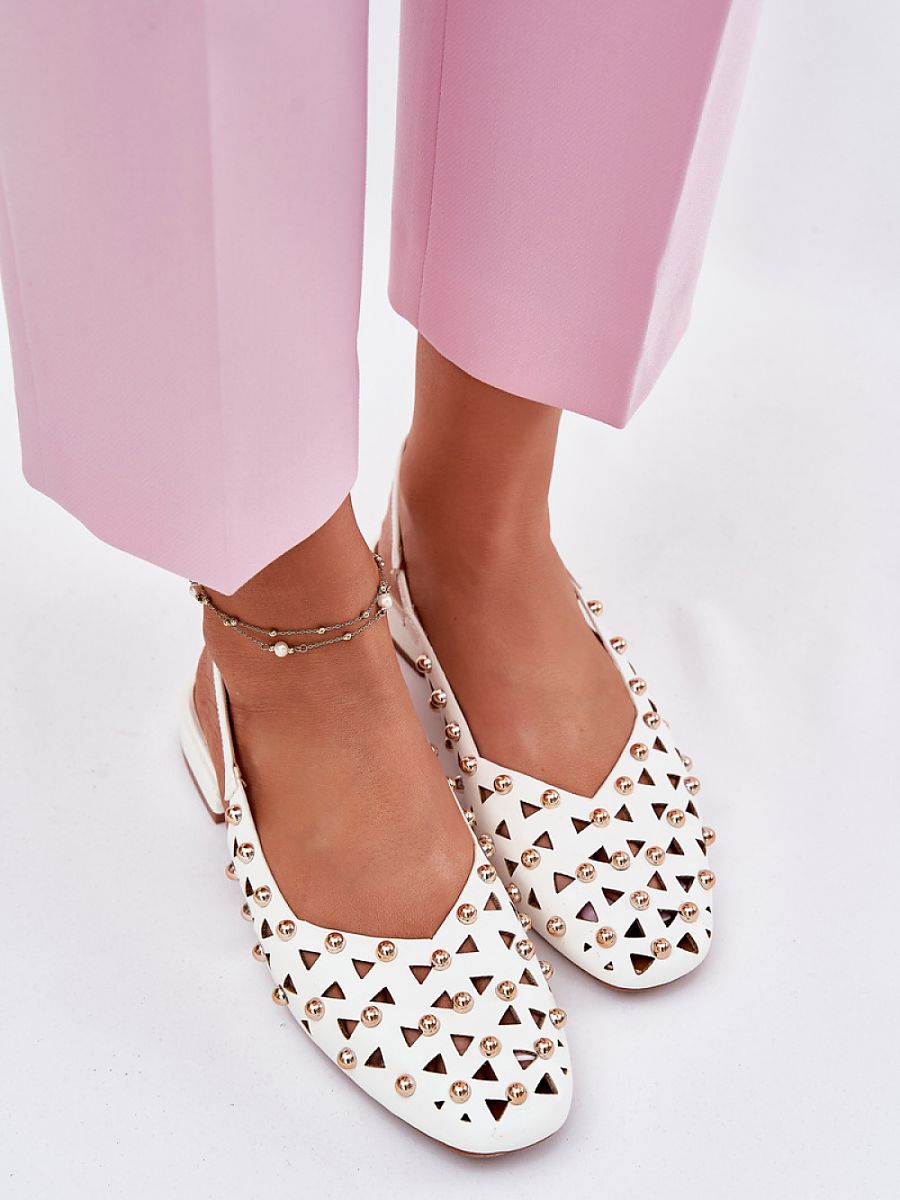 Women’s ballet flats with embellishment are a combination of elegance and comfort for everyday wear. The openwork pattern adds lightness and breathability to them, and the exposed heels emphasize the summer character of the shoes. Set on a flat heel, with rounded toes, they will work great with both dresses and pants, ensuring comfort throughout the day.