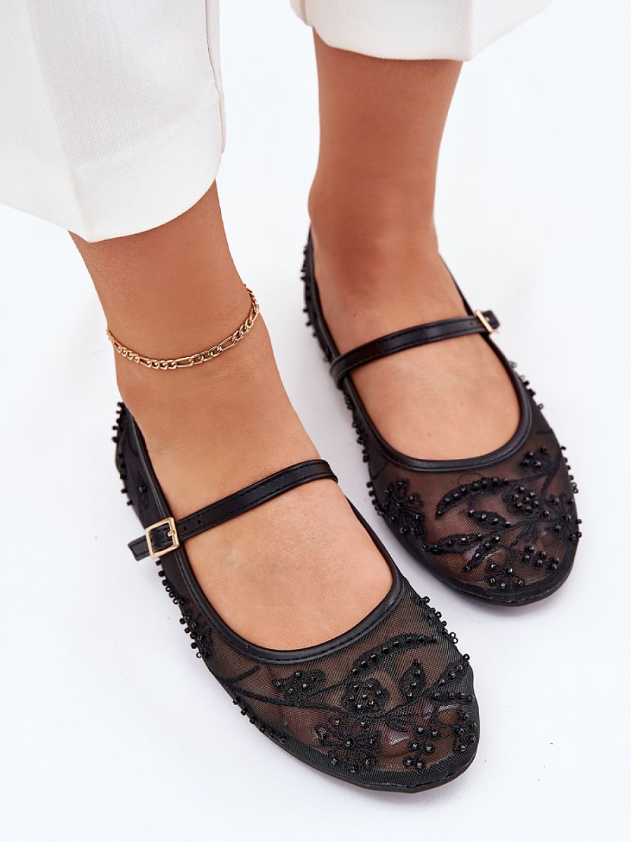 Mesh ballerinas with embellishments and embroidery are a stylish option for everyday wear. The strap across the midfoot provides additional support and comfort, while the rounded toes add subtlety. The soft, eco leather insole ensures comfort throughout the day. Perfect for both pants and dresses.