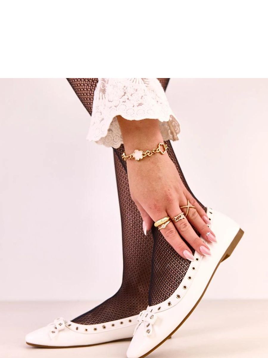 Elegant and charming ballerinas that combine a classic design with subtle, decorative details. Made of high-quality faux leather, they look stylish and are incredibly comfortable for everyday wear. The model stands out with a square toe, decorative eyelets, and a delicate bow on the front, giving the shoes a girly charm and a unique character. The flat heel ensures comfort while walking, and the leather insole further enhances comfort. These classic, low ballerinas will work perfectly in both casual and elegant outfits, making them a practical and fashionable choice for every woman.