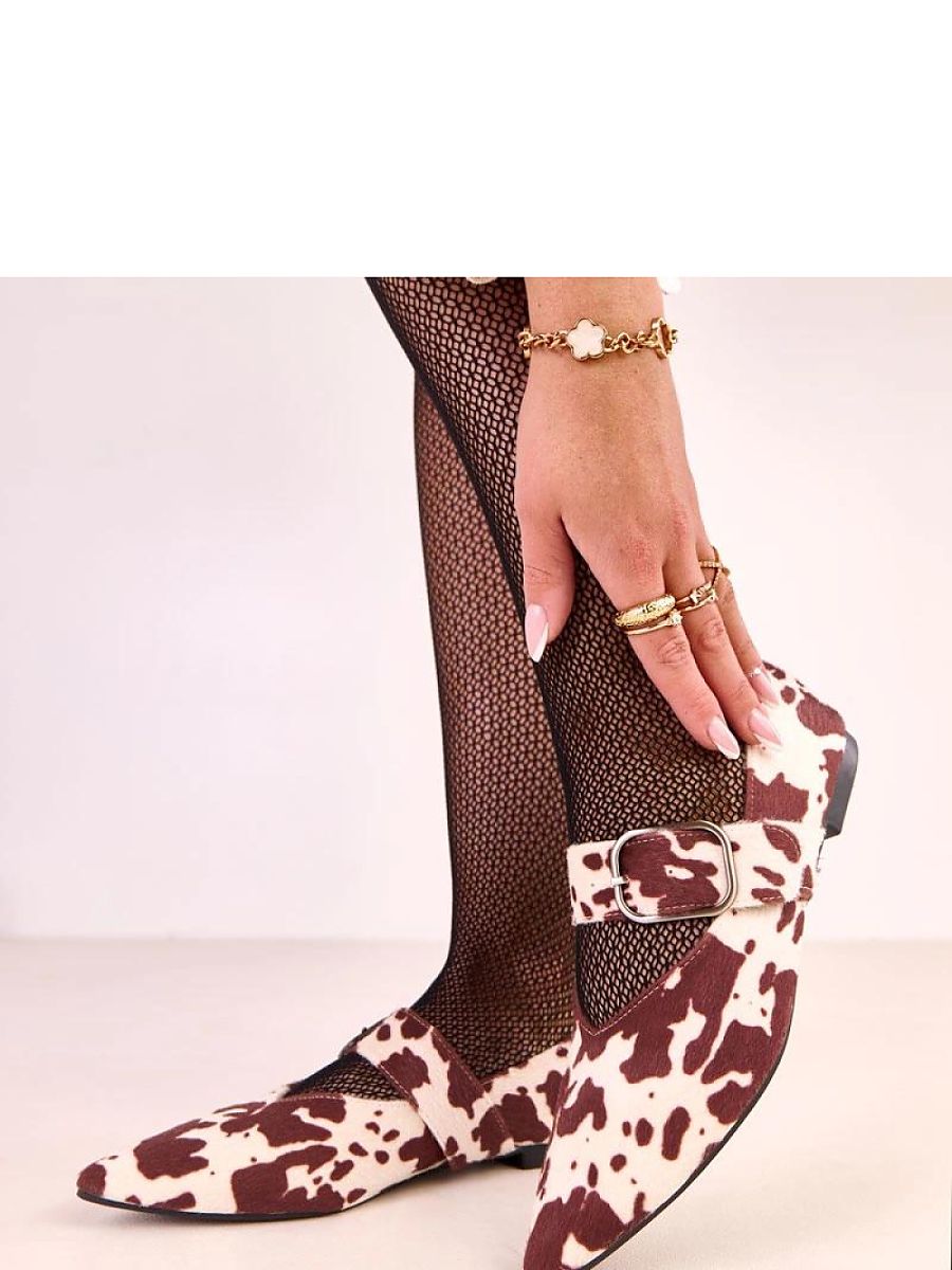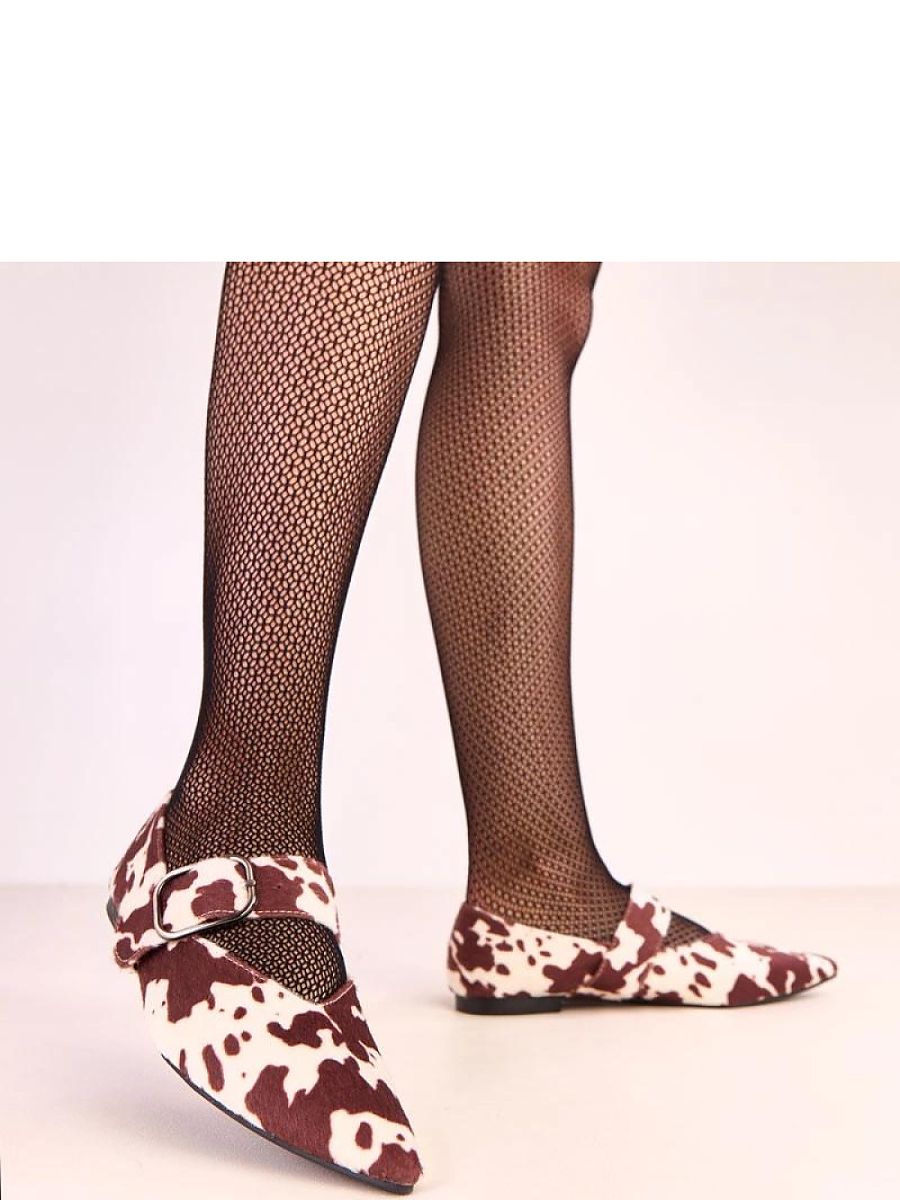 Stylish ballerinas fastened with a large buckle, made of high-quality ecological suede leather in a cow print pattern, which combines classic elegance with a modern accent. The pointed toe gives the shoes a feminine character and visually slims the foot. The model has an eco-leather insole, providing comfort during wear, and a classic cut that goes well with both elegant and everyday stylings. These are the perfect ballerinas for women who appreciate simplicity, comfort, and a stylish detail in the form of a bold buckle.