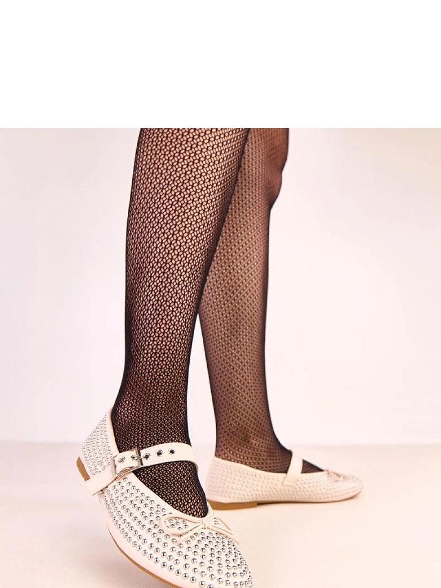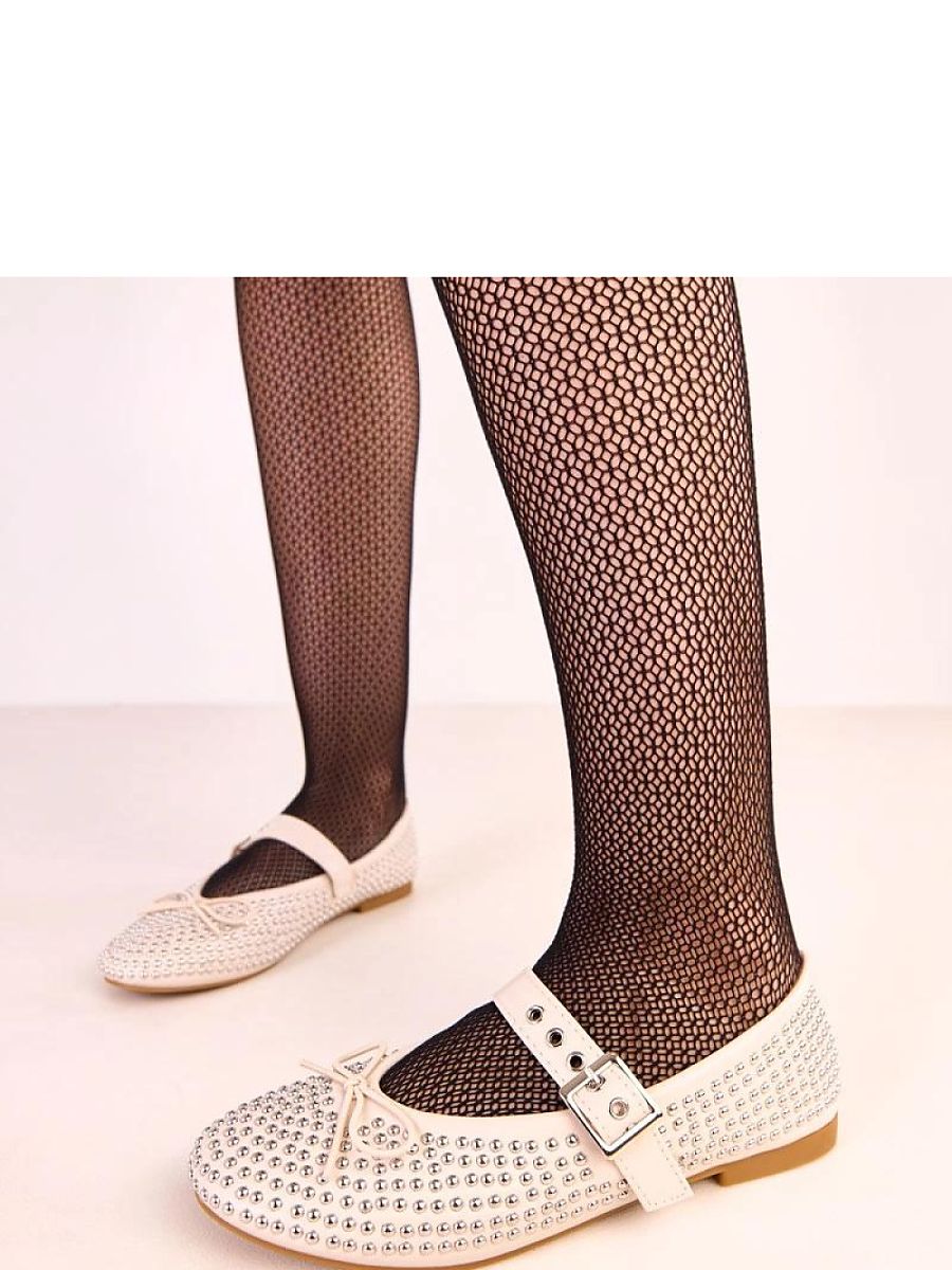 Charming ballet flats with a buckle closure, made of high-quality eco-leather, combining classic style with fashionable details. The model is decorated with delicate studs and a bow on the front, adding a girlish charm and a modern character to the overall look. The shoes have a round toe and an eco-leather insole, ensuring comfort while wearing. The classic design makes the ballet flats perfect for both everyday and more elegant stylings. This is a proposition for women who appreciate comfort, subtle elegance, and stylish details.