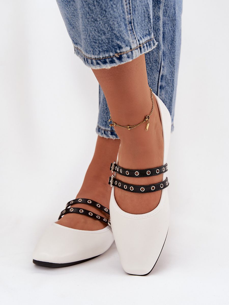 Women’s ballet flats made of eco leather are a stylish model that will work for many occasions. Delicately rounded toes give them a subtle, feminine character, and two straps on the instep not only decorate, but also help keep the foot in the right place. The soft insole provides comfort during daily wear. These are versatile ballet flats that will complement both casual and more elegant stylizations perfectly.