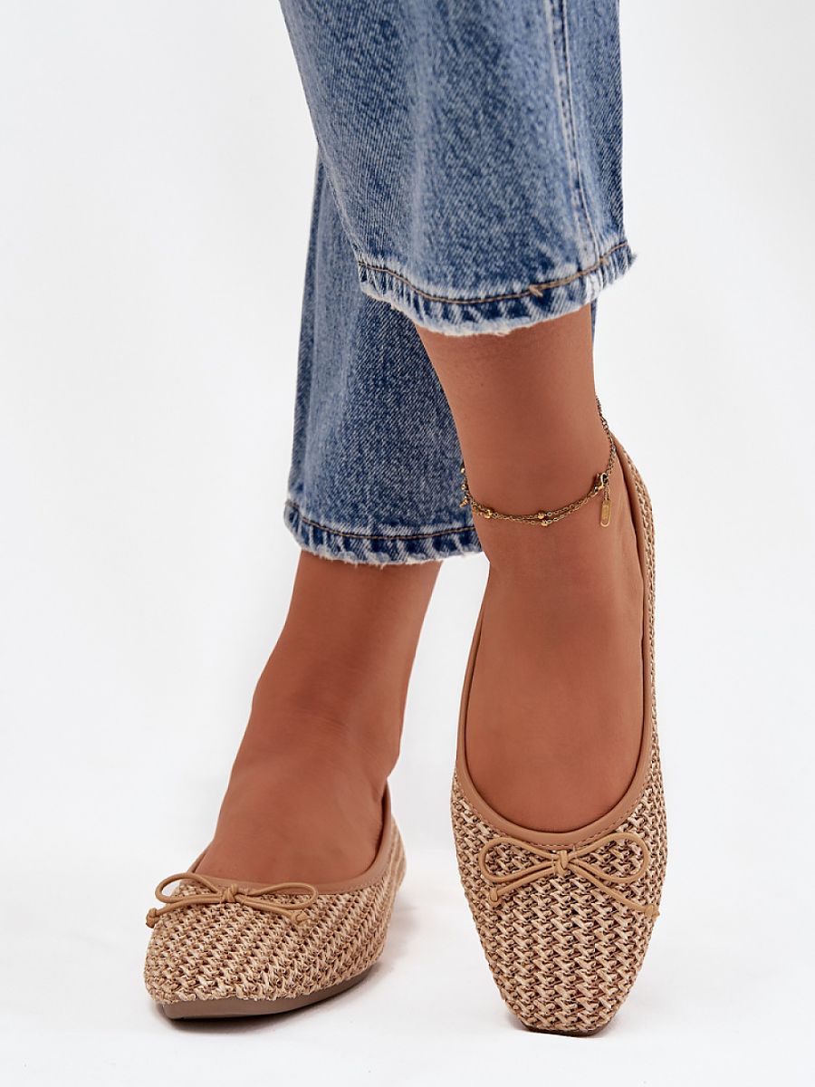 Women’s ballet flats made of braided material are lightweight and stylish footwear perfect for everyday wear. The model with rounded toes looks classic and feminine, and the flat sole ensures comfort while wearing. At the front, there is a cute bow tie that adds a delicate, girly character to the shoes. The interior is equipped with a soft eco-leather insole, guaranteeing comfort throughout the day. Perfect for work, a walk, or everyday outings.