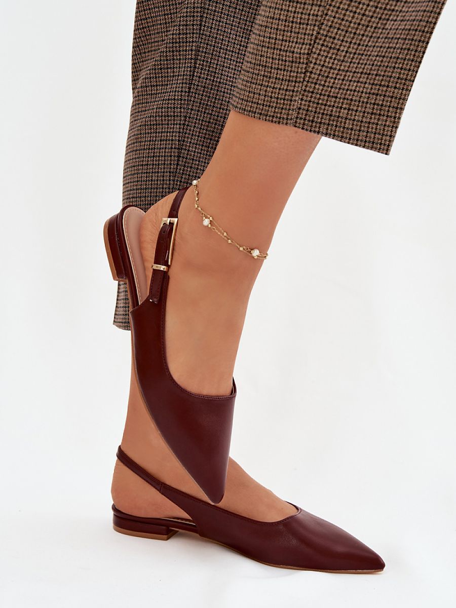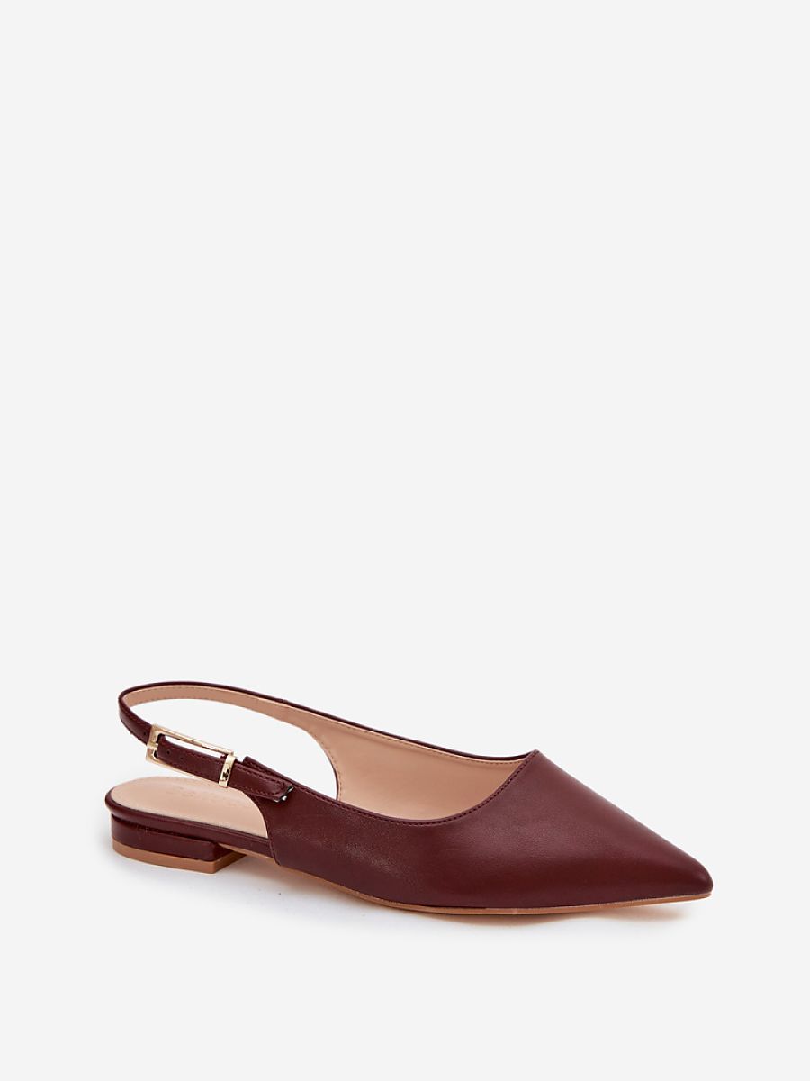 Elegant women’s ballerina flats made of eco-leather are a stylish proposal for any occasion. The pointed toes beautifully emphasize the foot line. The adjustable strap with a gold buckle allows for a perfect fit to the foot and at the same time serves as an eye-catching detail. The flat heel ensures comfort throughout the day, making the ballerina flats perfect for everyday wear, as well as for work or meetings.