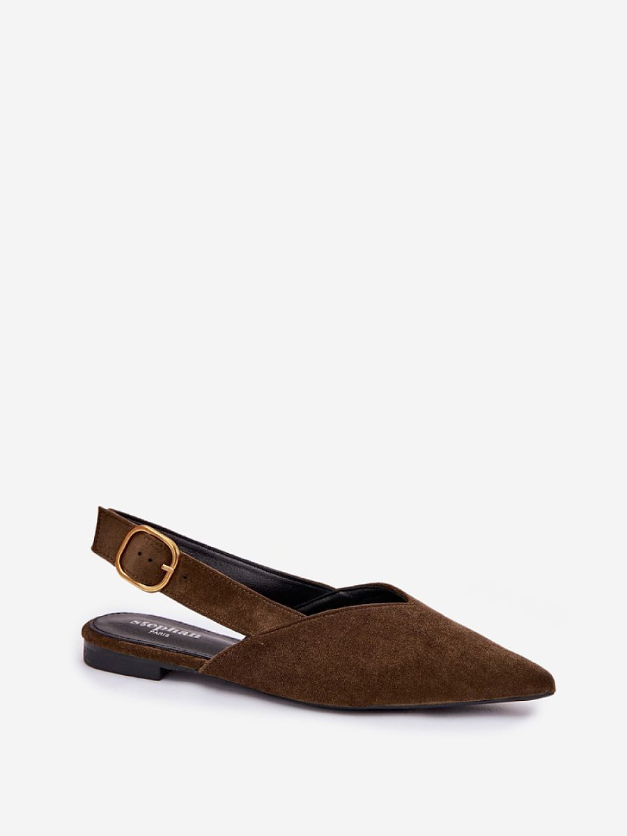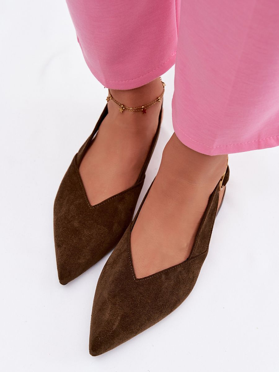 Stylish women’s ballerinas made of eco-suede are an elegant and comfortable option for everyday wear and special occasions. Pointed toes give them a modern character and visually slim down the foot. The adjustable strap fastened with a gold buckle allows for a perfect fit for the foot, while also serving as an elegant detail. This model will perfectly complement both casual and more elegant stylizations.
