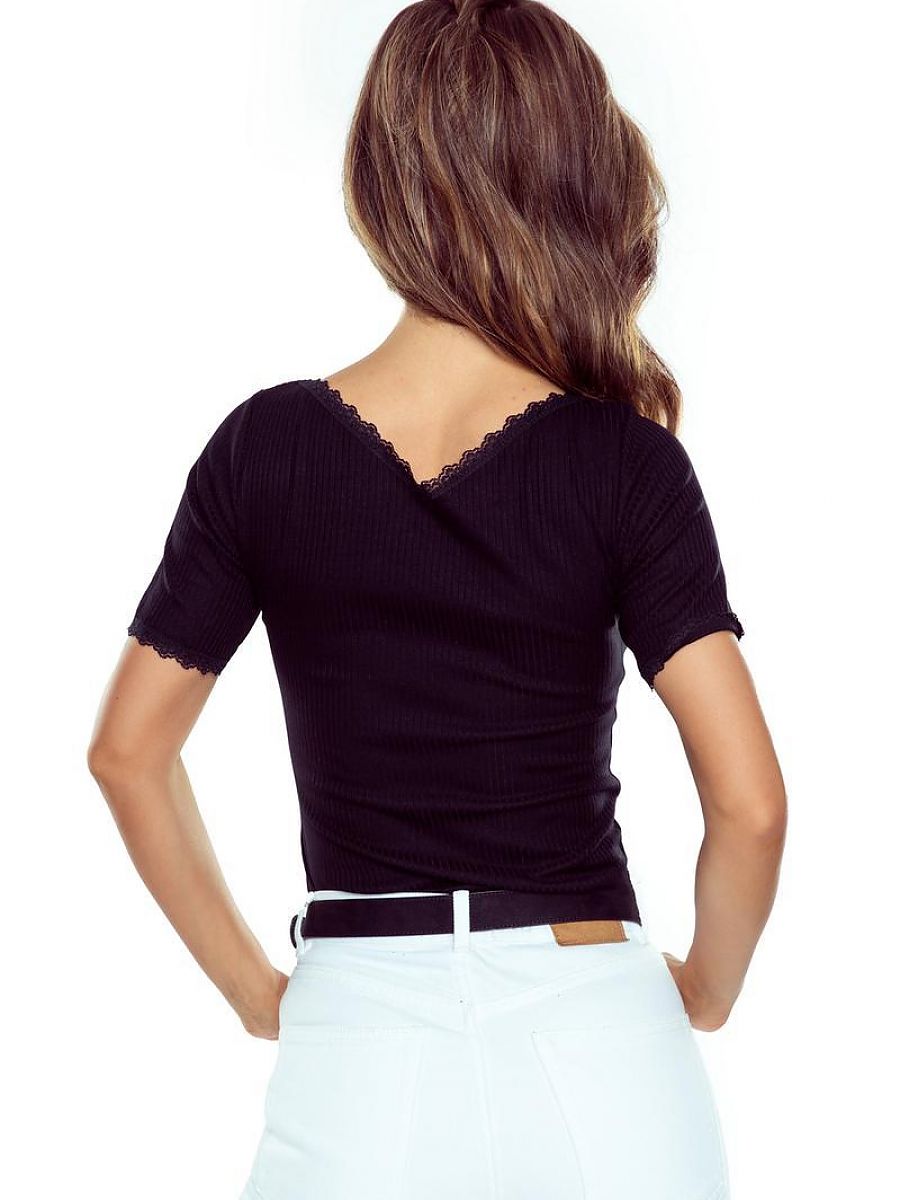 Welcome to our online store, where creativity meets comfort and style meets quality! Yearning to discover something unique for your closet? Meet our latest hit, a fitted blouse made of high-quality knit fabric in wide stripes. This blouse is not only a perfect combination of comfort and elegance, but also an expression of personal style. Thanks to its fitted cut, it emphasizes the feminine silhouette, adding confidence and attractiveness. The v-neck, or the popular V-neck, is not only a fashionable accent, but also an element that optically slims the silhouette, giving it subtlety and finesse. Finishing the sleeves with subtle lace adds unique charm and delicacy to the blouse. The product is proudly designed and sewn in Poland, which guarantees not only the highest quality materials, but also attention to every detail. It’s a basic that can’t be missing in any closet, perfect for everyday styling and special occasions. Do not delay any longer and add our matching blouse to your collection today to feel special and always stylish! The latest fashion trends and top quality products await you in our online store.