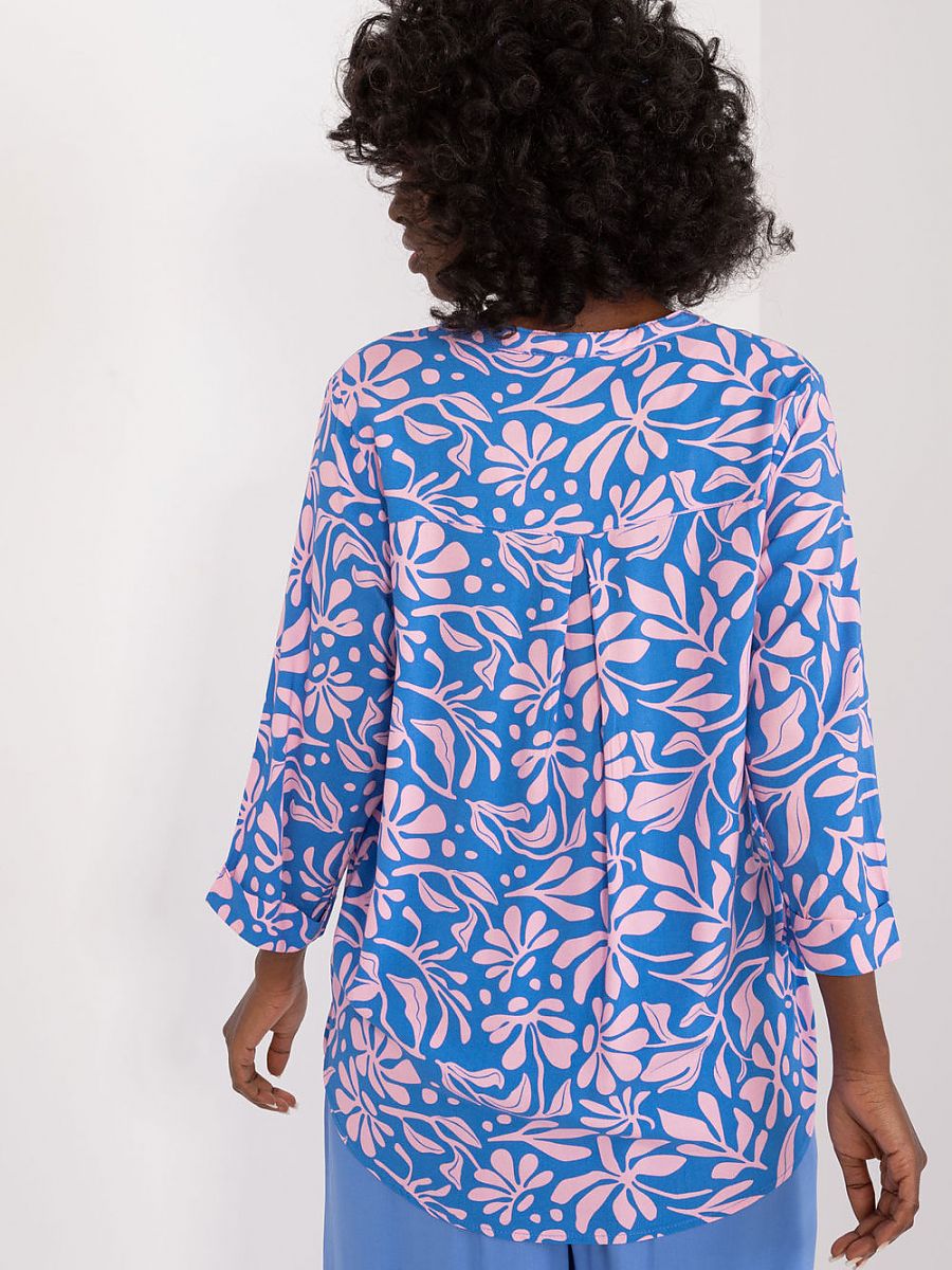 This blouse is a perfect choice for everyday wear, featuring a decorative button on the front that adds a unique touch. Made from 100% viscose, it is incredibly soft and comfortable to wear. The 3/4 sleeves and V-neckline provide a classic look that pairs well with casual outfits. The colorful print adds a vibrant and cheerful expression to the blouse, making it a great addition to any daily wardrobe. The standard length of the blouse makes it suitable for pairing with both jeans and skirts.
