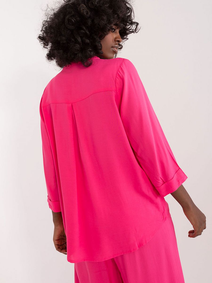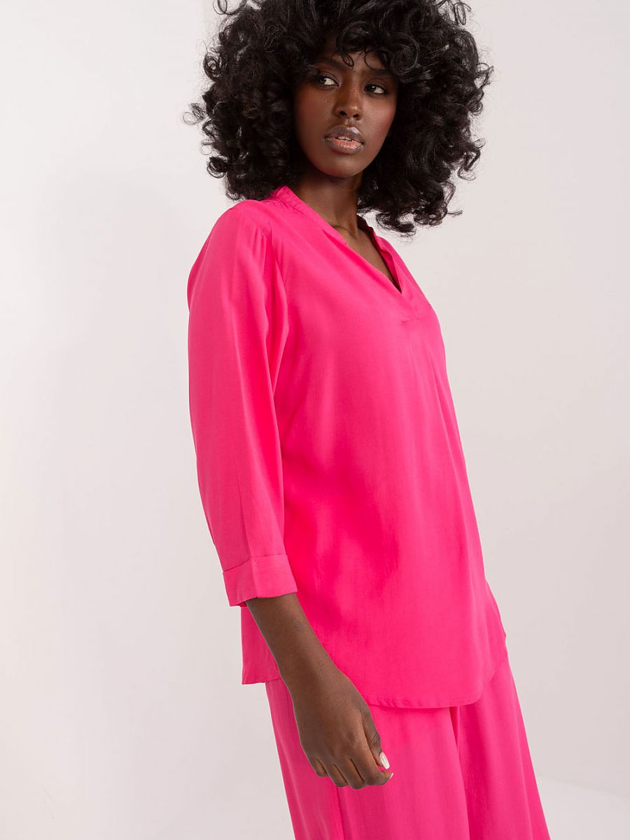 This daily blouse is the perfect combination of comfort and elegance, designed for everyday styling. Made from soft and breathable viscose, it is pleasant to the touch and provides all-day comfort. The blouse features 3/4 sleeves, which are practical and versatile, suitable for both warmer and cooler days. The V-neck adds a feminine charm to the blouse, delicately emphasizing the neck and decolletage. The smooth fabric makes the blouse elegant and easy to pair with various wardrobe pieces, making it versatile and universal. The standard length of the blouse makes it a perfect match for pants, skirts, or shorts, offering multiple styling possibilities. The absence of a closure enhances the wearing comfort and makes the blouse easy to put on and take off. This is an excellent choice for women who appreciate the combination of fashionable look and comfort in their everyday outfits.