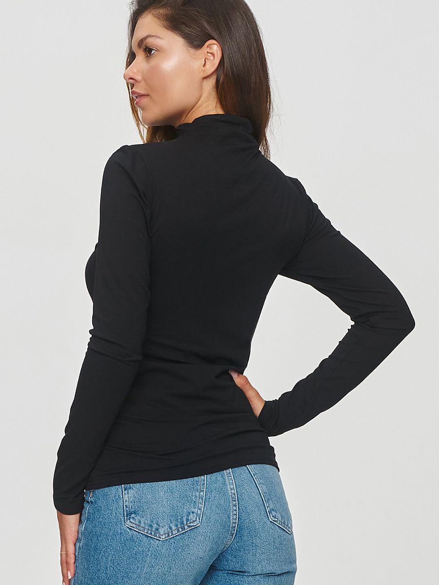 A universal women’s blouse made of lightweight and breathable viscose is a classic in the autumn-winter wardrobe. The model has a high neck and long sleeves, ensuring functionality. The stitching on the front of the blouse adds originality and unique character to it. The model is slightly fitted but does not restrict movement, thanks to the elastic material. Its simple form is a perfect complement to many casual and more formal stylizations. The model is ideal for women who appreciate a combination of comfort, functionality, and timelessness.
