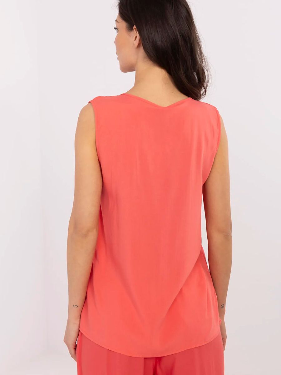 Women’s casual blouse is a universal and comfortable proposition for everyday wear, which fits perfectly into the casual style. Made of soft and breathable viscose, it provides comfort throughout the day, maintaining lightness and a natural look. The blouse has a standard length, a round neckline and is sleeveless, making it an ideal choice for warmer days. The smooth material in a solid color makes the blouse extremely versatile and easy to combine with various wardrobe items. It pairs perfectly with jeans, shorts or skirts, making it an excellent base for daily, comfortable styling.