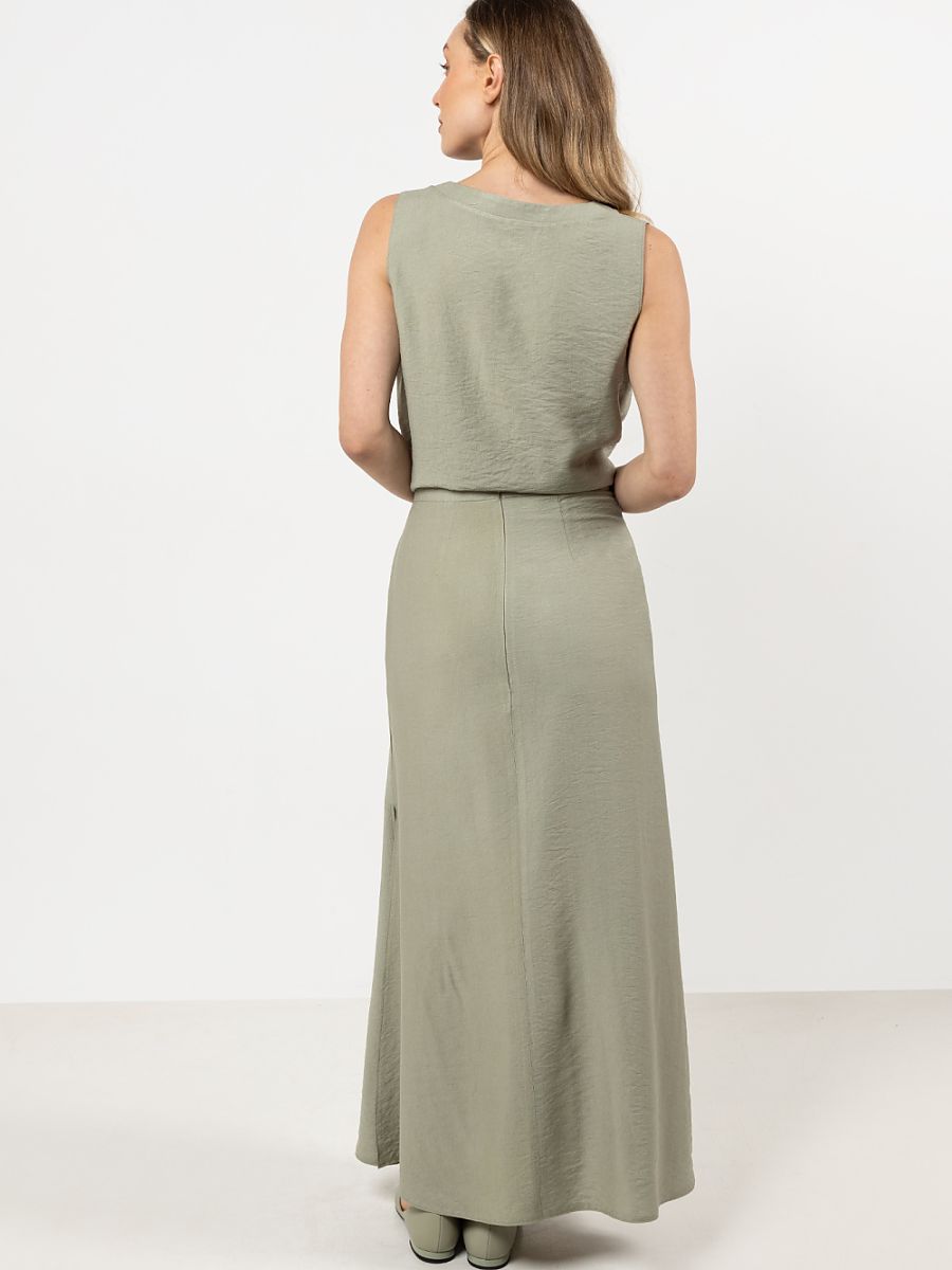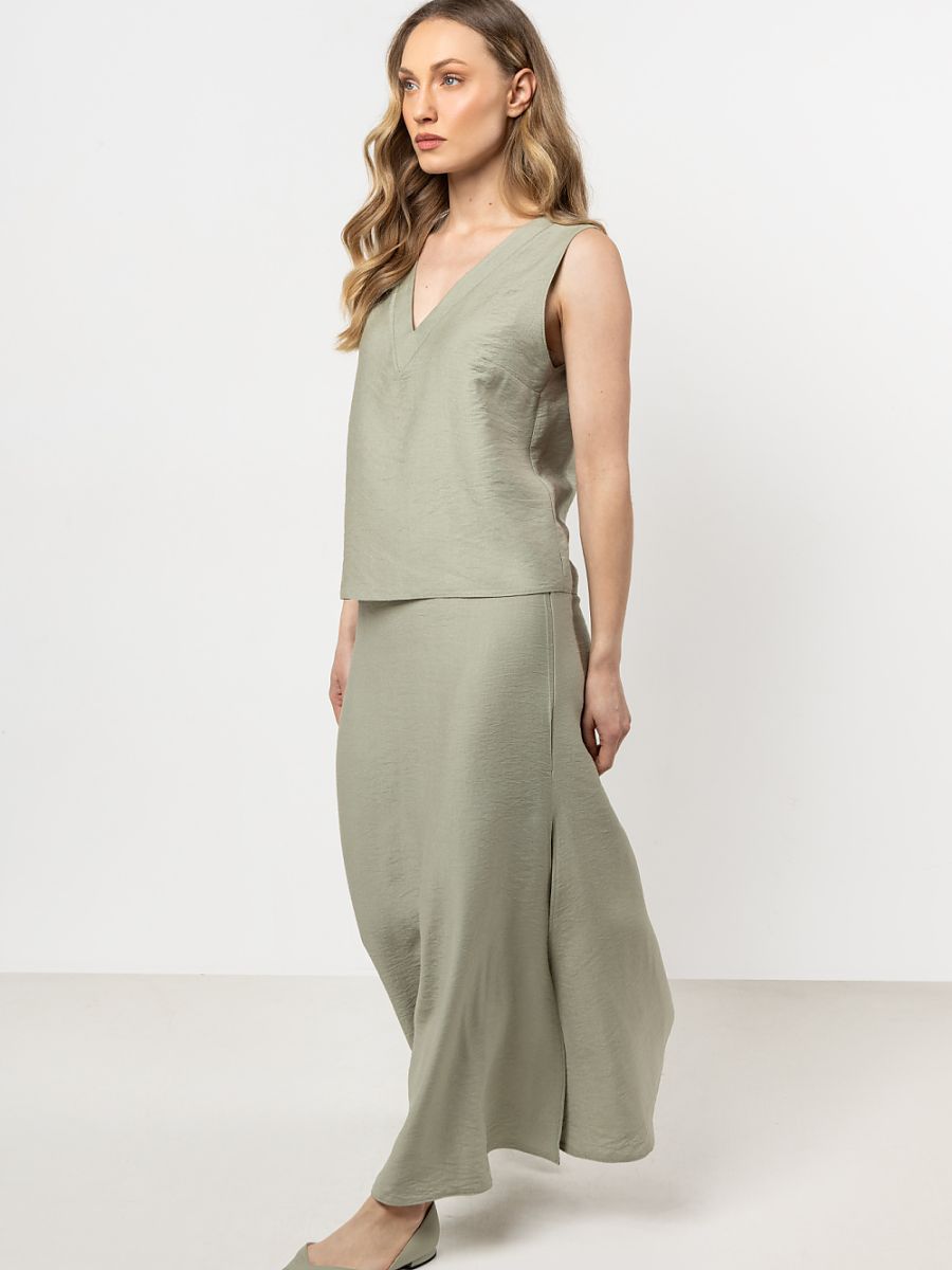 This blouse is the perfect combination of elegance and comfort. The simple, slightly fitted shape subtly accentuates the silhouette, while the V-neckline visually elongates the neck. The wide straps ensure comfort, and the darts on the bust help to keep the fabric in place. It will work great in both casual and elegant styling.