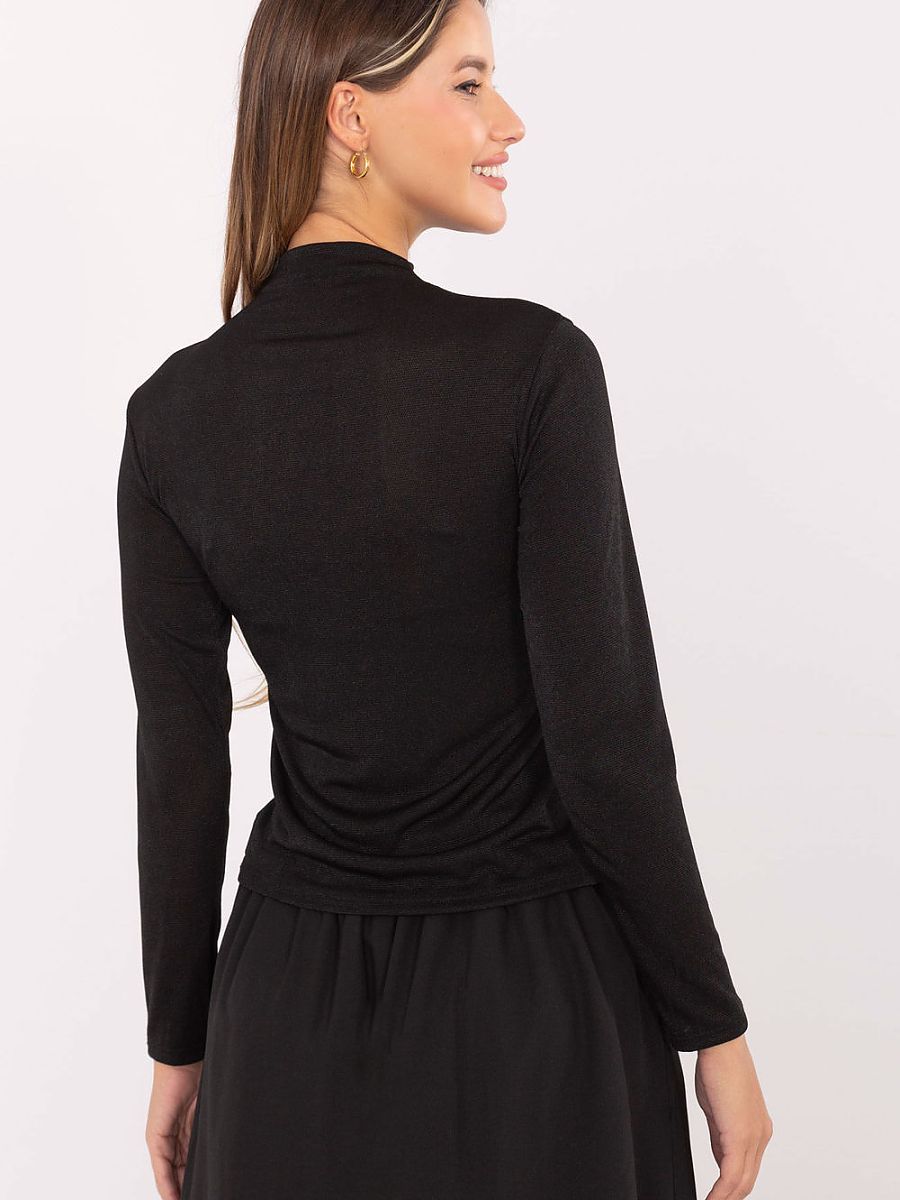 This fitted women’s blouse is an elegant and versatile option, perfect for everyday wear, work, and formal occasions. The standard length model with long sleeves and a classic turtleneck accentuates the silhouette while maintaining comfort. Made of a soft blend of viscose and polyester, the blouse is pleasant to the touch, flexible, and easy to care for. The smooth pattern makes it very versatile and easy to combine with various skirts, pants, or elegant accessories. The lack of fastening ensures practicality and comfort, and the classic, elegant cut makes the blouse suitable for many styles from casual to formal.