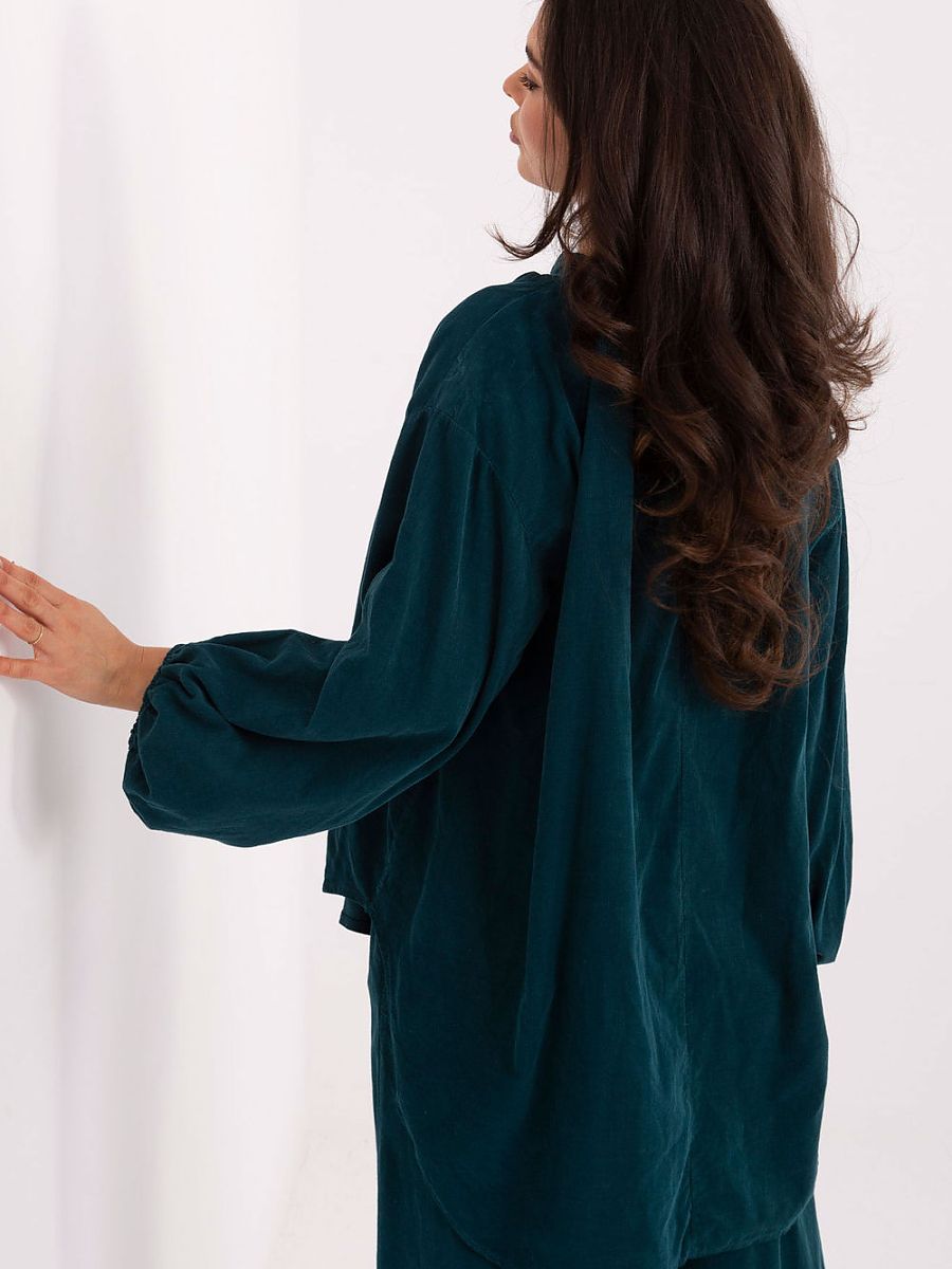 Stylish shirt blouse in a casual version, perfect for everyday wear. Made of lightweight and pleasant to the touch polyester, it provides comfort throughout the day. The model has long, puffy sleeves that add subtle lightness and feminine character. The heart-shaped neckline with a delicate stand beautifully accentuates the neck, and the button closure halfway makes it easy to put on and gives the whole an elegant finish. The blouse in a smooth, uniform color of standard length goes perfectly with both jeans and skirts, creating a daily, fashionable look.