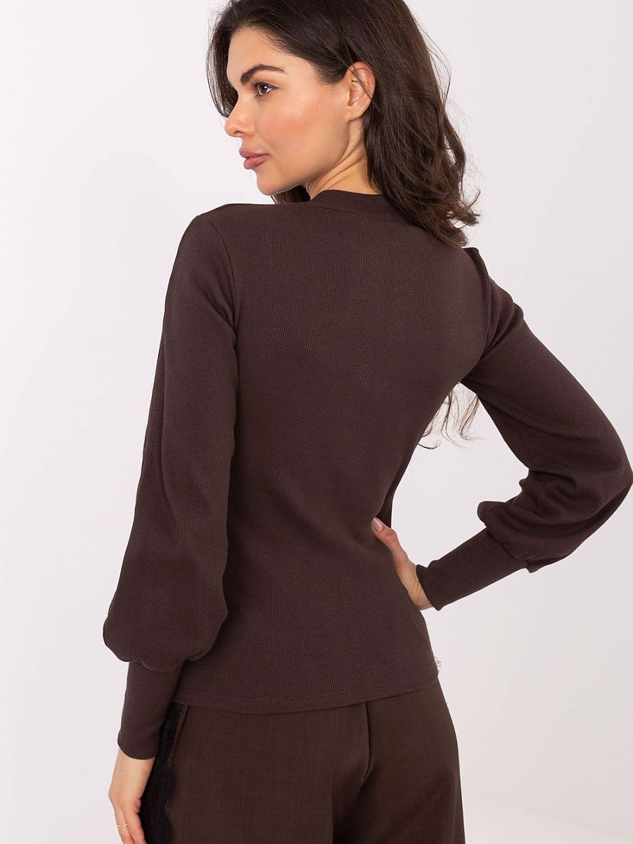 Stylish and comfortable blouse made of ribbed fabric is a classic that will work in any everyday styling. Made of a flexible blend of cotton and elastane, it perfectly fits the silhouette, providing comfort throughout the day. The model has a turtleneck that subtly emphasizes the neck and gives the whole an elegant character. Long sleeves with wide cuffs add a modern expression and light originality to the blouse. Thanks to its smooth structure and standard length, the blouse is perfect both with trousers and a skirt, ideal for everyday wear, work or as a base for a blazer. The lack of fastening makes it extremely practical and comfortable to use.