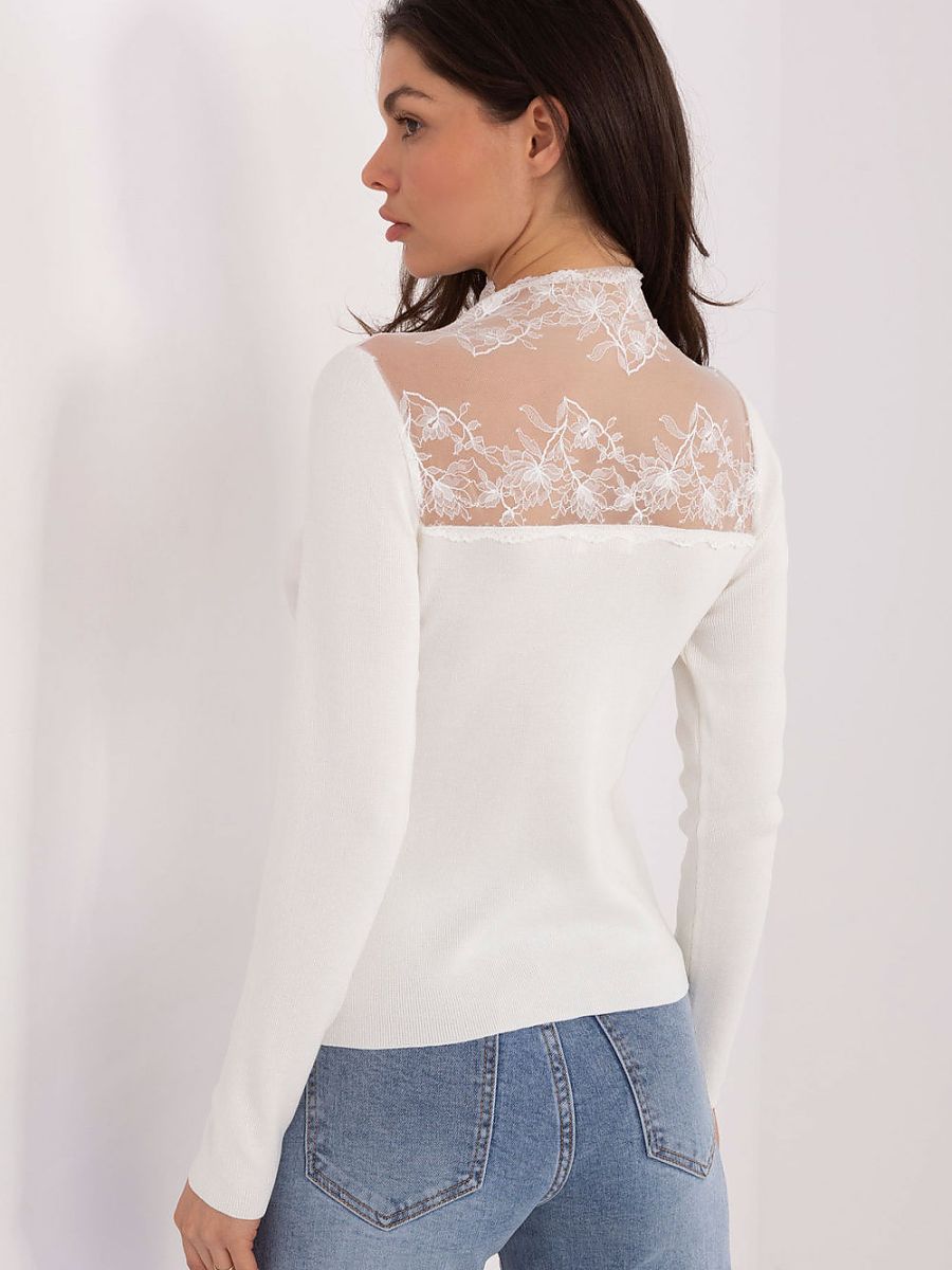 The exceptional elegant, fitted blouse is a proposal created for women who appreciate subtle sensuality and class in everyday, office and occasional stylizations. The varied texture of the material and the striped structure give it a modern character, while emphasizing the feminine silhouette. The model is made of high-quality blend of viscose and polyester, making the blouse elastic, soft and pleasant to the touch. The standard length and long sleeves make it look elegant and versatile. The biggest advantage of this model is the lace insert at the top with a low turtleneck, which adds delicacy and subtle elegance to the blouse. The lack of fastening ensures comfort and perfect fit. This is a blouse that will work great both at work and during special occasions, stylish, feminine and extremely eye-catching.