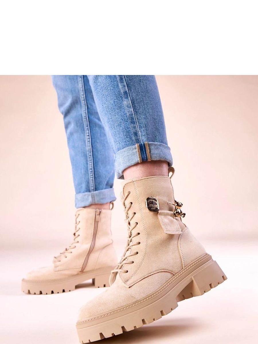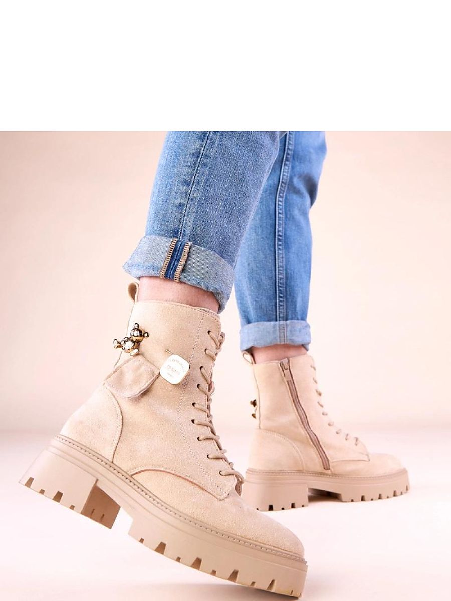 Discover the latest trend in the world of fashion – beige women’s boots with a golden teddy bear by Messey. These unique shoes are a combination of style, comfort, and functionality, perfect for any woman who values not only appearance but also comfort on colder days. Our women’s boots are made of high-quality materials that ensure durability and weather resistance. The beige color is not only fashionable but also versatile, matching many styles. Therefore, you can wear them for everyday as well as more elegant outfits. The unique element of the golden bear adds character to the shoes and makes them stand out from other models. It is the perfect choice for women who want to add a bit of sparkle to their look. The outer surface of the shoes is easy to clean, maintaining their attractive appearance for a long time. The interior of the boots is lined with soft material, providing comfort and warmth even on the coldest days. The sole is made of non-slip material, guaranteeing safety on slippery surfaces. Thanks to the lacing, the shoes fit perfectly to the foot, ensuring stability and comfort for all-day wear. If you are looking for fashionable women’s boots that combine elegance and practicality, beige boots with a golden teddy bear by Messey are the perfect choice for you. Don’t miss the opportunity to enrich your wardrobe with this unique model!