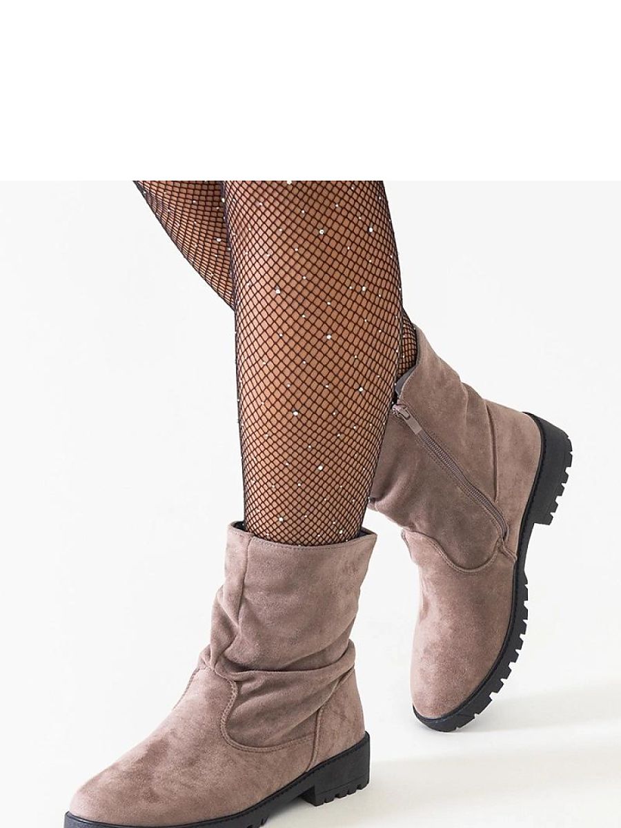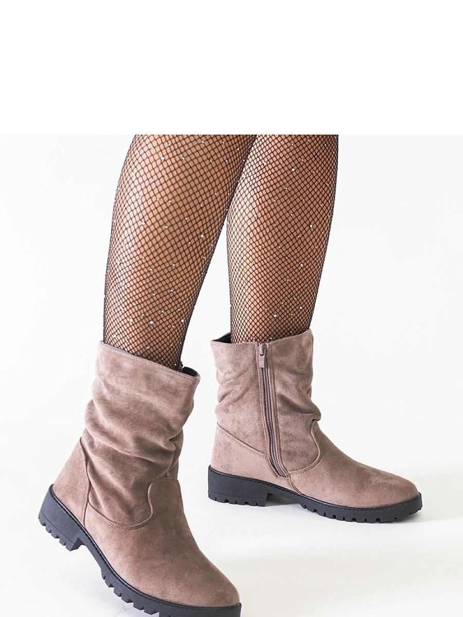 Brown wrinkled ankle boots made of eco-suede Hinda are a perfect choice for winter for those who value comfort and a fashionable look. Made of insulated eco-leather, they provide warmth even on the coldest days. Their revolutionary design makes them very popular among fashion lovers. The boots have an almond toe that adds elegance and a high ankle cut that adds character to any outfit. Made of rubber soles provide good grip on various surfaces. The brown color makes them suitable for many outfits, making them an ideal complement to any autumn and winter outfit. Hinda boots are a combination of functionality, style, and comfort in one.