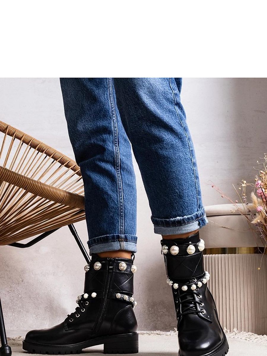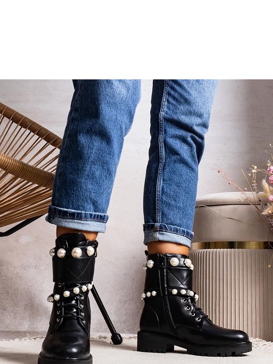 Black lace-up women’s ankle boots with pearls by Carvala are the perfect addition to your fall-winter wardrobe. The Carvala model stands out with decorative pearl straps that add elegance and feminine charm to the boots. Made of high-quality materials ensuring comfort, these ankle boots are not only stylish but also comfortable. The soft and warm lining will make you feel comfortable even on cold days. The sizing is standard, so you can confidently choose your size. Thanks to the insulation and black rubber sole, these boots will be the perfect choice for autumn and winter days. Add a touch of luxury and style to your wardrobe with Carvala ankle boots!
