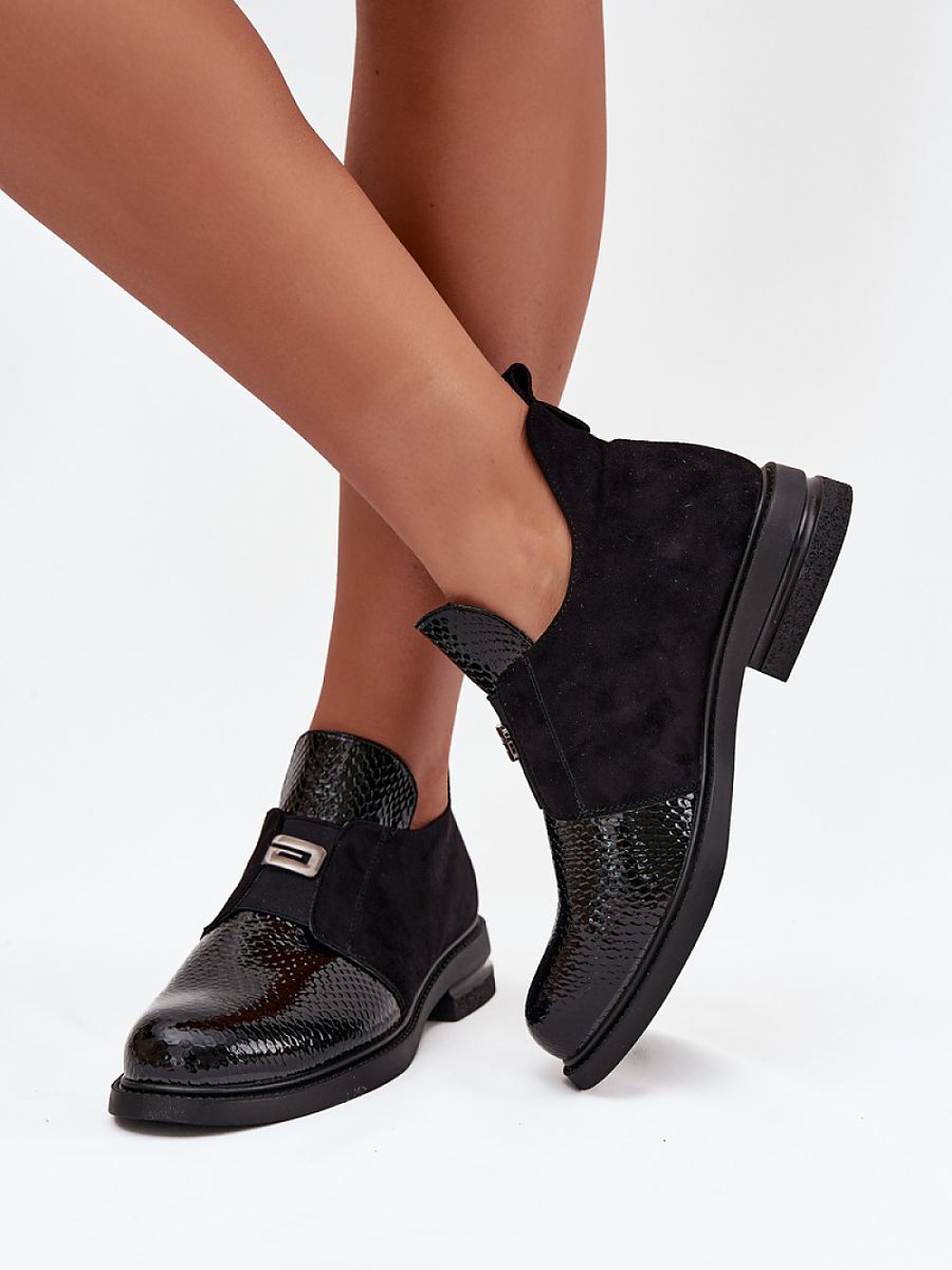 Women’s ankle boots from the Vinceza brand are a stylish and comfortable proposition, perfect for cooler days. Made of a combination of patent eco leather and soft eco suede, they present a modern look and an interesting contrast of textures, giving them a unique character. The slip-on model with a low upper is extremely practical, making it easy to put on and take off the shoes, while also performing well in everyday use. The low heel guarantees comfort and stability, making the shoes perfect for longer wear. A subtle decorative detail placed at the front adds an elegant accent to the whole. The interior is lined for warmth and comfort in the autumn-winter season. These ankle boots will complement both casual outfits and more elegant ensembles perfectly.