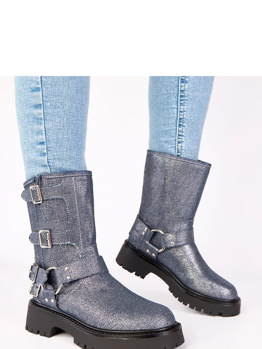 Slip-on boots with decorative buckles are a fashionable and comfortable option for cooler days. Made of artificial material with a silver shine, they attract attention and add a modern character to the styling. Decorative buckles are an eye-catching detail that emphasizes the unique design of the footwear. The rounded toe guarantees comfort while walking, and the soft lining keeps the feet warm in low temperatures. The high shaft, 18 cm in height, and ankle-reaching silhouette provide stability and protection, while the 4 cm heel gently lifts the silhouette, without sacrificing comfort. The insole made of pleasant to the touch fabric increases comfort of use, making the boots perfect for everyday wear as well as for more elegant, casual stylings.