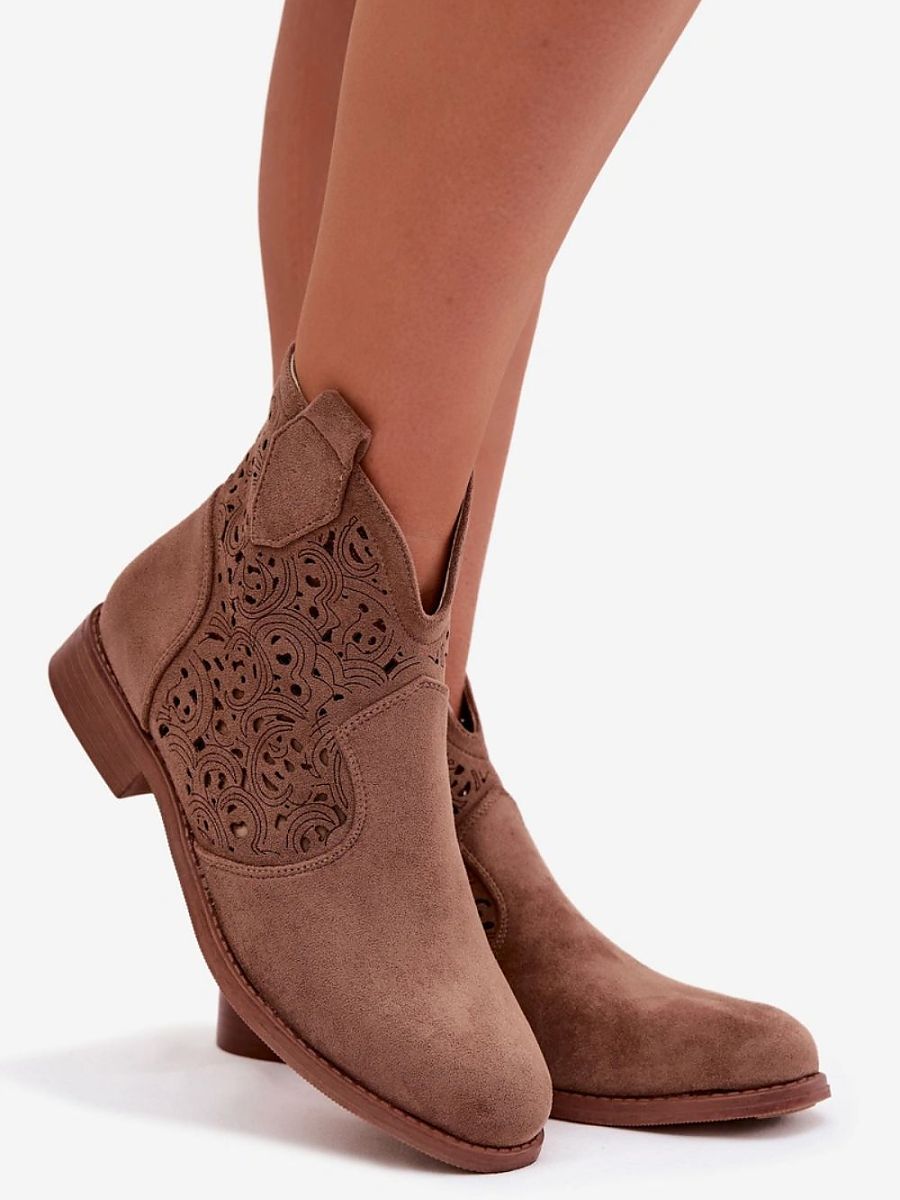 Women’s ankle boots by S.Barski are a combination of comfort and timeless style. Made of eco suede. The model set on a flat heel guarantees stability and comfort during daily wear, and the rounded toes give a classic character. The openwork finish of the upper introduces a delicate, feminine accent that distinguishes the model and adds lightness to it. The zip closure allows for quick and convenient putting on. These are versatile ankle boots that will complement both everyday stylizations with trousers and more feminine sets with a dress or skirt.