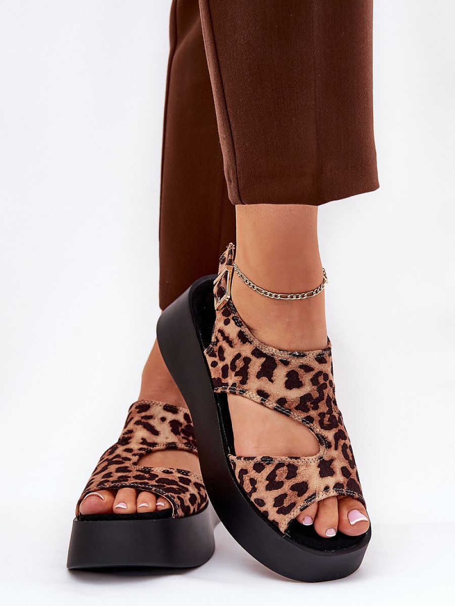 Stylish women’s sandals made of eco suede. Set on a massive platform that provides comfort and stability. Fastened with a buckle with an adjustable strap, allowing for a perfect fit to the foot. The soft insole ensures comfort throughout the day. Perfect for summer days, these sandals combine a fashionable look with functionality, matching dresses, skirts, and pants.