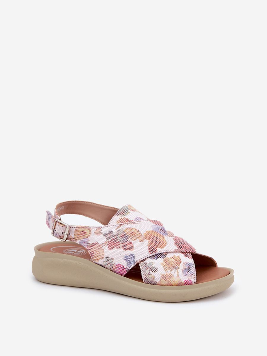 Women’s sandals by Jezzi. Made of high-quality eco leather. Set on a delicate wedge heel, they provide stability and comfort when worn. Fastened with an adjustable buckle strap, they guarantee a perfect fit to the foot. At the front, two interlocking wide straps. Lightweight and comfortable, they will work perfectly in various summer stylings.