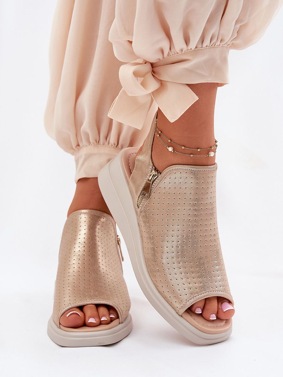 Women’s sandals by the Jezzi brand, made of eco leather, are an elegant and comfortable option for warm days. Set on a wedge heel, they provide stability and comfort throughout the day. This model has a short zipper on the side of the upper, making it easier to put on and take off shoes. These stylish sandals go perfectly with summer dresses, skirts, and pants.