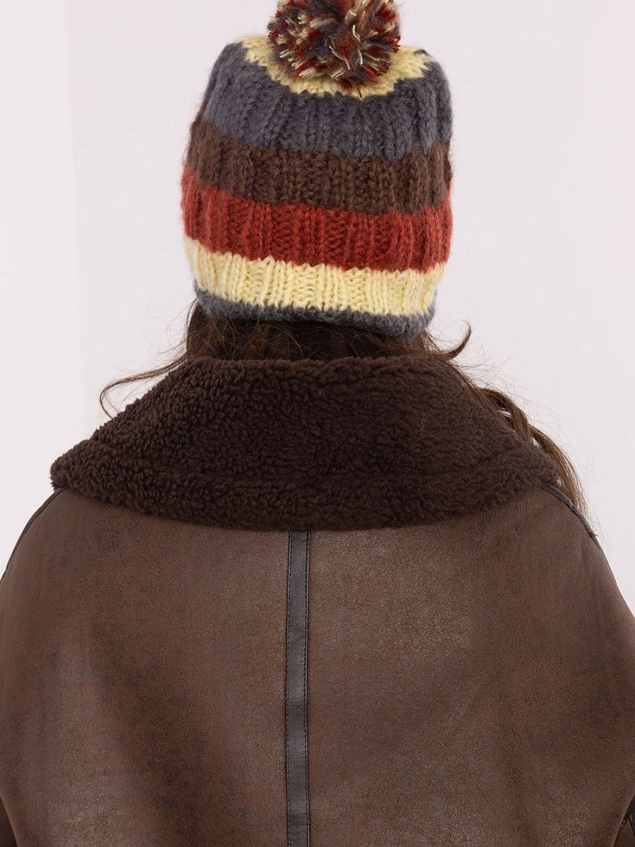 This cute winter beanie is the perfect choice for cold days. Made of soft and warm material, it perfectly protects from the cold for comfortable wearing. Its design is eye-catching thanks to colorful stripes in vibrant shades, which give the cap a cheerful and fashionable look. At the top of the cap is a large, fluffy pom-pom, which adds to its charm and character. The cap is flexible, so it fits well to different head sizes. It’s a stylish and functional accessory that will be great for both everyday walks and winter outdoor activities. Ideal as a gift for lovers of practical and aesthetic accessories.