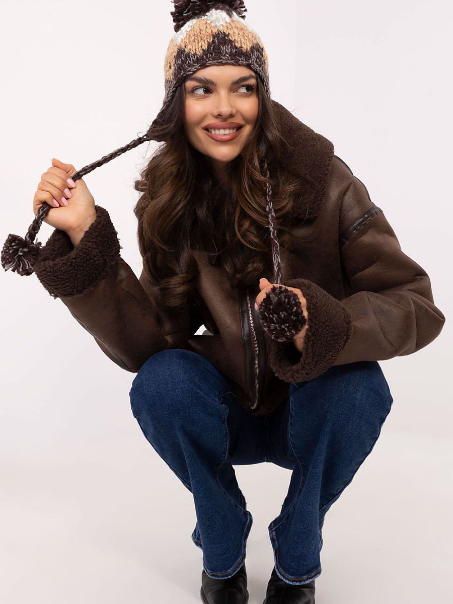 Stylish and functional ear hat is an excellent choice for winter days. Made of warm, soft material, it perfectly protects against the cold, wrapping your head and ears. Its distinguishing feature is the fashionable geometric diamond pattern, which gives it a modern and unique character. Subdued colors, combined with subtle contrasts, make the cap fit into many stylings. An additional accent is the large, fluffy pom-pom on top, which adds to the overall charm and girlish grace. Thanks to the classic cut of the earflap, the beanie provides extra warmth and comfort, perfect for cold, windy days. A combination of practicality and fashionable design, it is the perfect accessory for women who appreciate style and comfort.