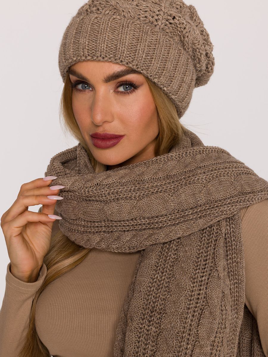 Warm hat made of soft yarn with a thick, braided weave. The simple cut with a gentle looseness at the top gives the whole a casual, stylish character. The rolled edge provides extra comfort and better fit, and the decorative braided weave adds a classic, winter charm.