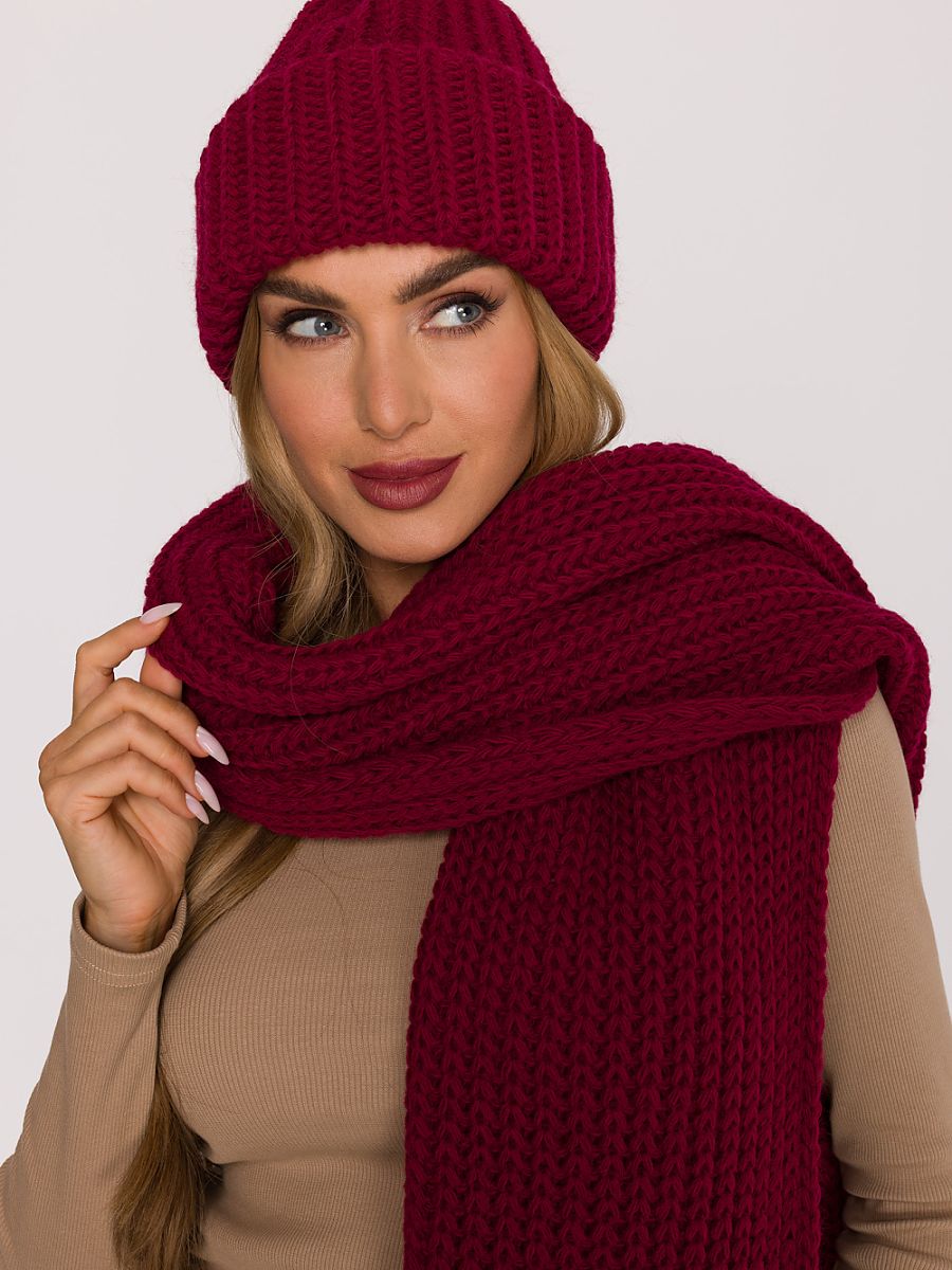Warm hat made of soft yarn with a thick, ribbed weave. It has a simple cut with a bit of looseness at the top, giving it a casual, modern look. The folded edge provides a better fit and an additional layer of warmth, creating the perfect combination of style and comfort.
