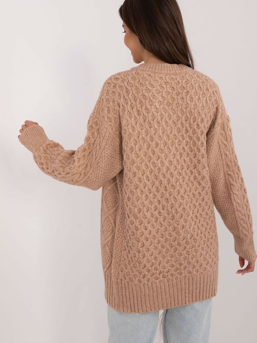 Women’s button-up casual sweater is a perfect choice for everyday styling, combining comfort with a fashionable look. Made of a blend of acrylic, polyamide and polyester, it provides softness, durability and pleasant warmth. The long length and long sleeves make it ideal for cooler days, adding elegance to any outfit. The sweater is characterized by a varied texture of the material, which gives it a unique character, and the round neckline gives it a classic, universal look. Buttons along the entire length of the sweater allow for easy putting on and taking off, as well as the possibility of wearing it in different ways. It is a practical and stylish wardrobe element that will work great in everyday, casual combinations.