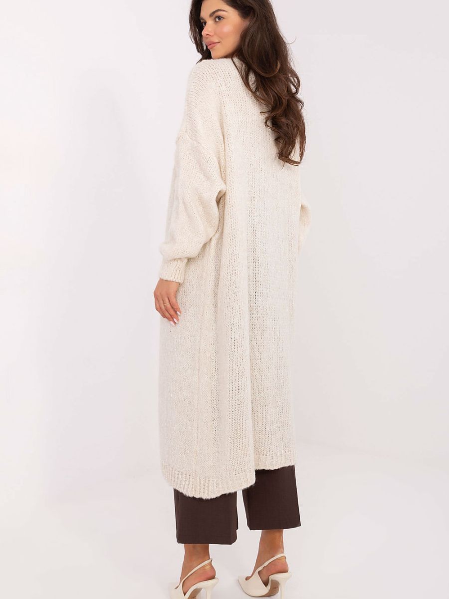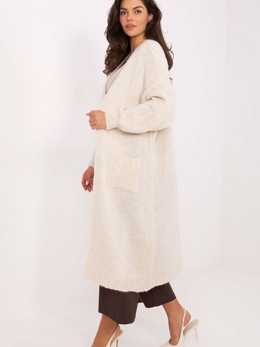Long women’s cardigan in a casual style, perfect for everyday wear and work. Made of a soft and pleasant to the touch blend of polyacrylic, polyamide, wool, and viscose, provides comfort all day long. A model without fastening, knee-length, with long sleeves and practical slip pockets, combines elegance with functionality. The smooth texture of the material makes it easy to combine the cardigan with various stylizations, creating comfortable and stylish outfits.