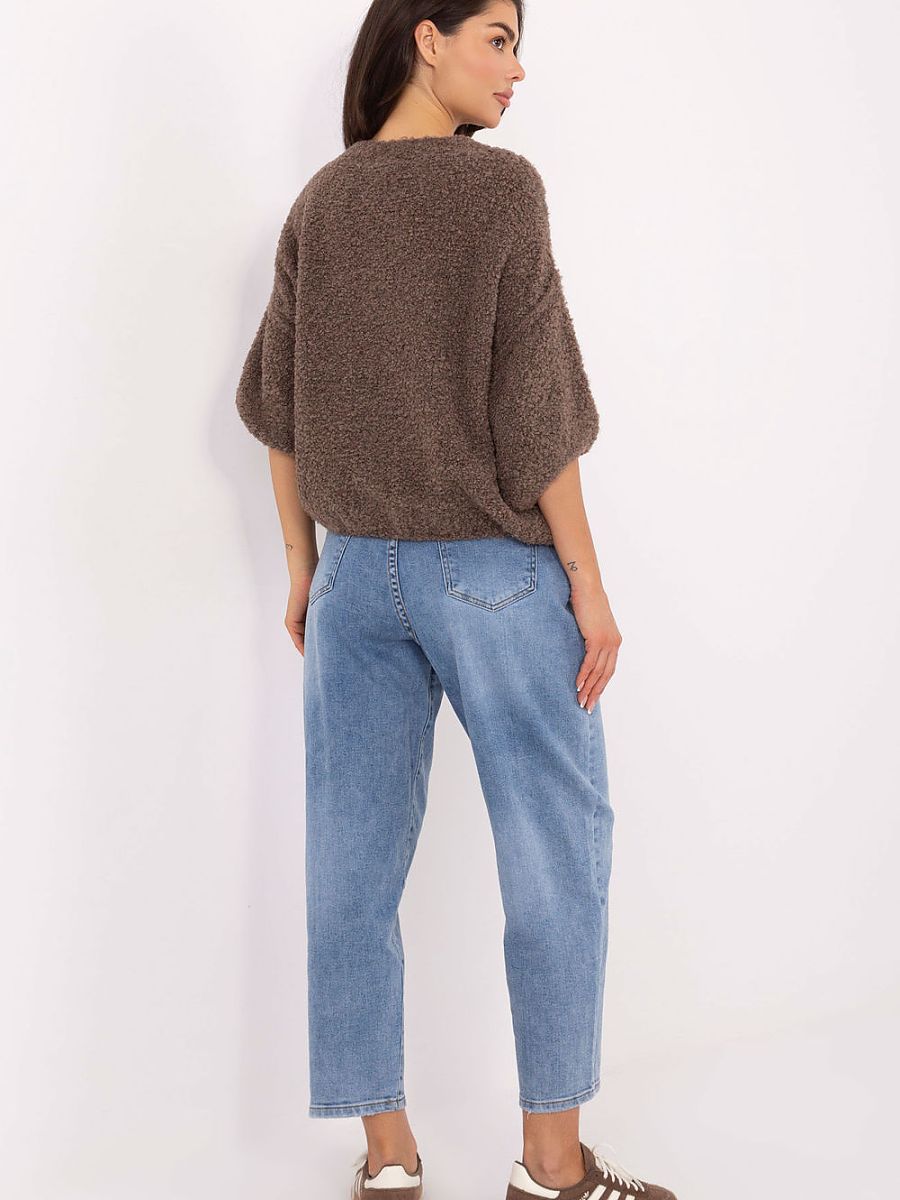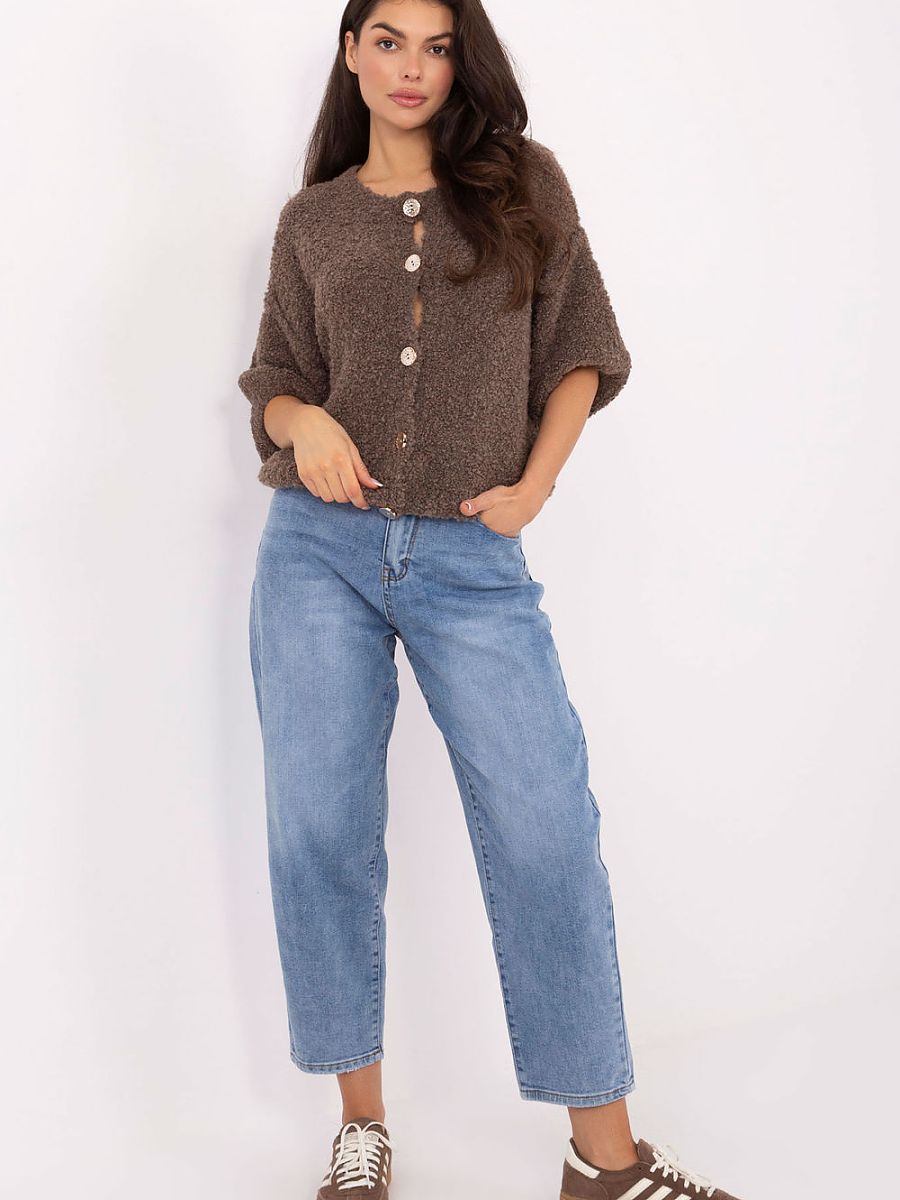 Loose-fit women’s sweater is an elegant proposition perfect for everyday and work. Made of a pleasant to the touch fabric with a varied texture, made of a blend of acrylic, polyamide, wool, and viscose, it provides comfort and warmth throughout the day. The standard length and 3/4 sleeves give it lightness, while the round neckline subtly emphasizes the neck. The sweater is buttoned, which adds a classic, feminine character to it. It will work perfectly in both elegant office stylizations and everyday outfits with jeans or a skirt.