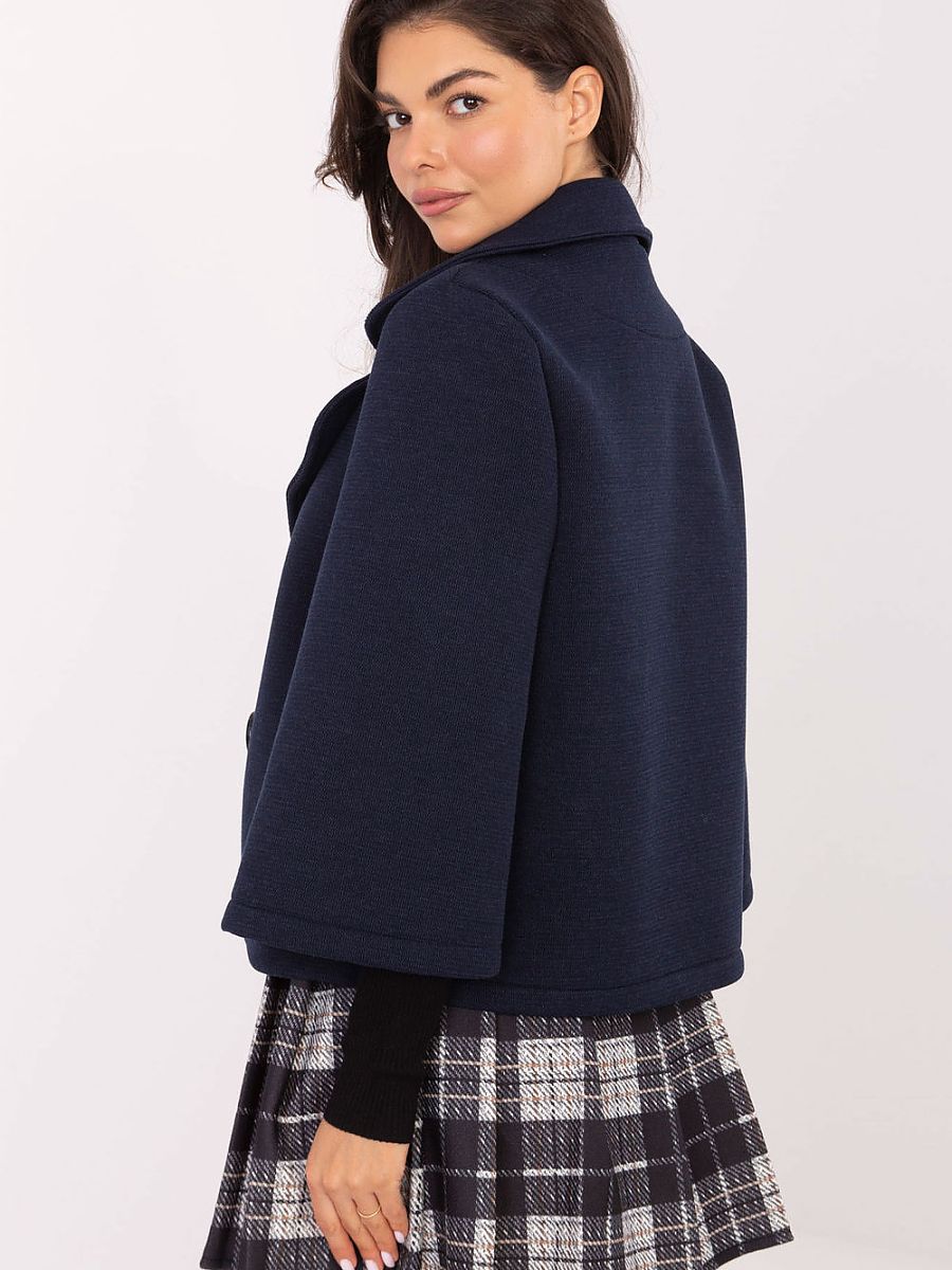 Short women’s coat with an elegant character, perfect for the transitional season of autumn, winter, and spring. Made of high-quality blend of polyester, viscose, and elastane, it is characterized by a smooth structure and comfort of wearing. The model with lapels, fastened with buttons, has practical slip pockets. 3/4 sleeves add lightness, and a decorative brooch on the lapel emphasizes the elegant style. Unlined, it will work great in everyday and office stylizations.