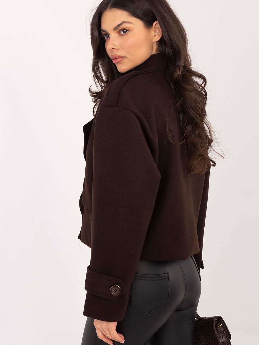 A short women’s trench coat is a classic transitional coat in a casual style that will work great for both everyday wear and work. Made of polyester, it looks elegant and is practical to use, and thanks to its smooth texture, it remains timeless and versatile. The short length model is equipped with long sleeves, wide lapels, and epaulettes on the shoulders, which give it a characteristic trench coat look. The double-breasted button closure emphasizes the classic cut, and the lining increases comfort and attention to detail. This lightweight coat without insulation is ideal for the autumn, winter, and spring seasons. It will perfectly complement daily stylizations, adding elegance and urban chic to them.