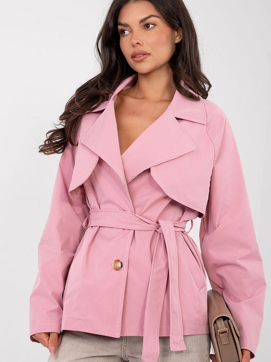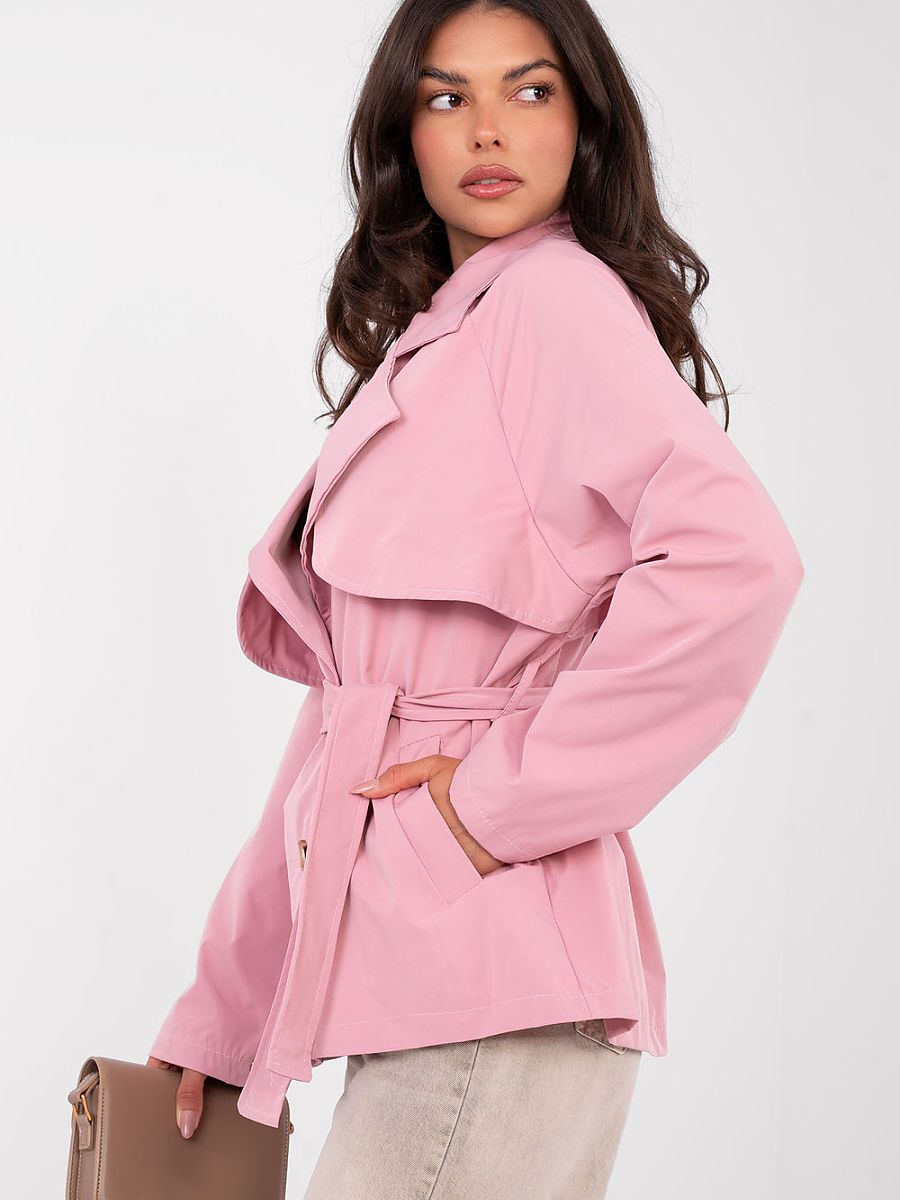 Stylish women’s trench coat in a casual version, perfect for everyday outings and work. A transitional model that will be perfect for the fall, winter, and spring seasons. The smooth pattern emphasizes the timeless character of the coat, and the short length gives it a modern, light look. Made of high-quality polyester, lightweight and comfortable to wear. The coat has long sleeves, single-breasted button fastening, and a waist tie belt, which allows you to adjust the fit to your silhouette and accentuate the feminine figure. Practical slip pockets add functionality and everyday comfort. A versatile choice for work and everyday wear, combining classic and modern style.