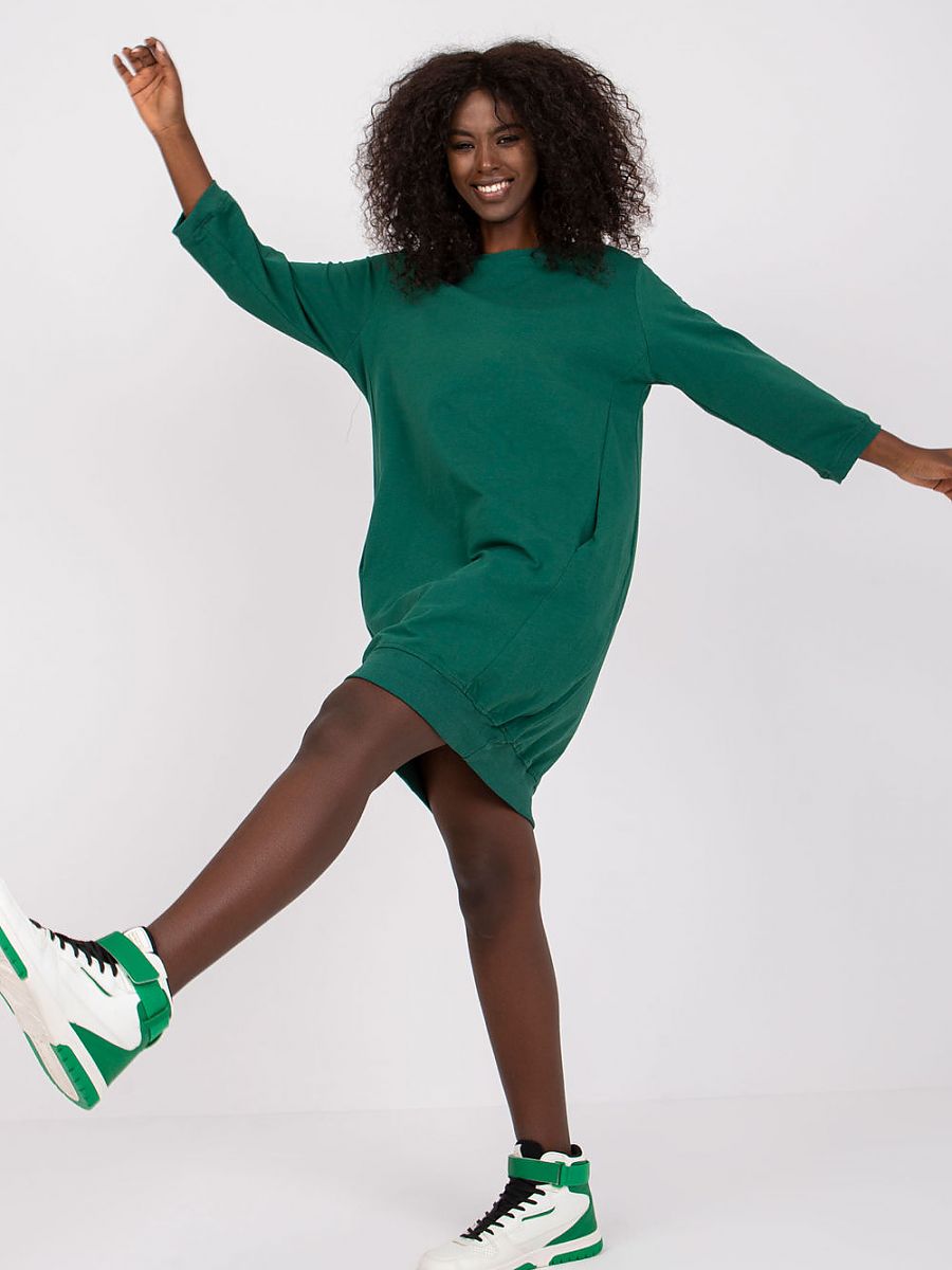 Cotton dress in a loose fit, 3/4 sleeves, with slip pockets on the front.