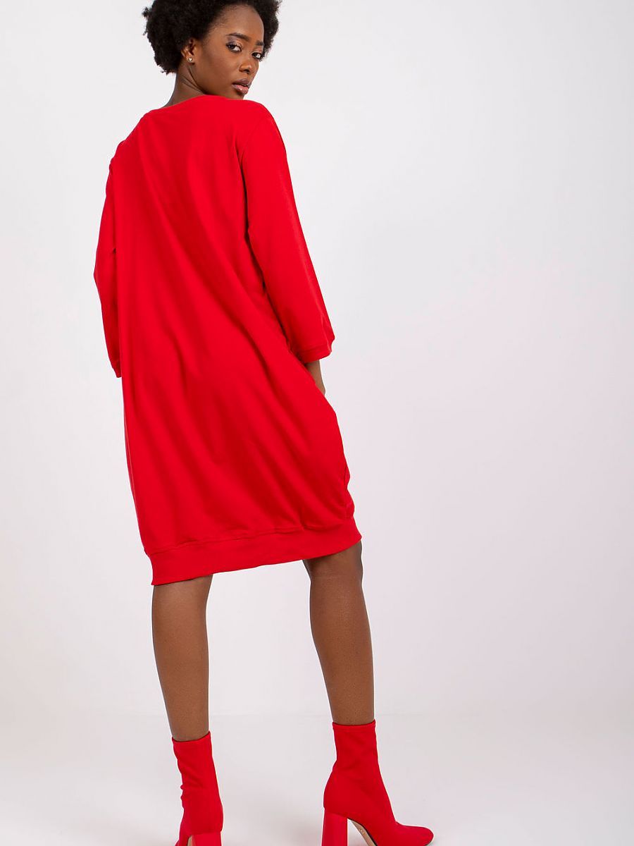 Cotton dress in a loose fit, 3/4 sleeves, with slip pockets on the front.