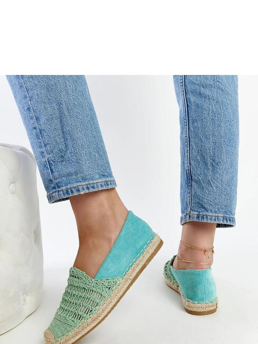 Mint openwork espadrilles Gordana are the perfect choice for summer! Made of delicate material, they provide comfort and lightness when worn. Their beige rubber sole ensures stability and comfort while walking. The slip-on closure makes it easy to put on and take off shoes quickly. These espadrilles will be a perfect addition to summer wardrobe and ideal for summer walks or outdoor meetings. Lining: No. Collection: Summer.