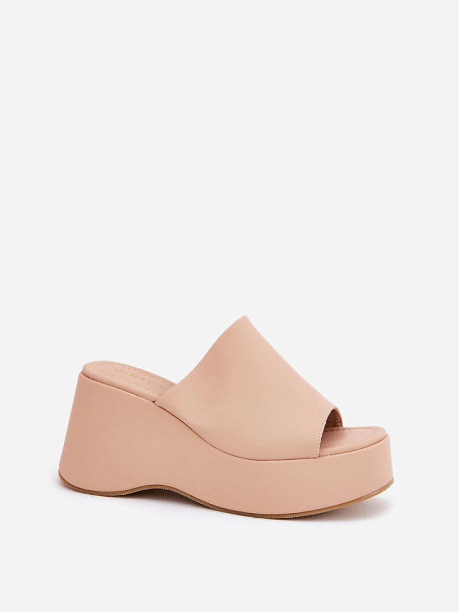 Stylish flip-flops made of eco leather. Set on a platform and wedge heel, they provide stability and comfort throughout the day, visually elongating the legs and accentuating the silhouette. The soft insole guarantees wearing pleasure, providing adequate cushioning and comfort while walking. These flip-flops will work perfectly in everyday stylizations, ideal for summer dresses, skirts or pants.