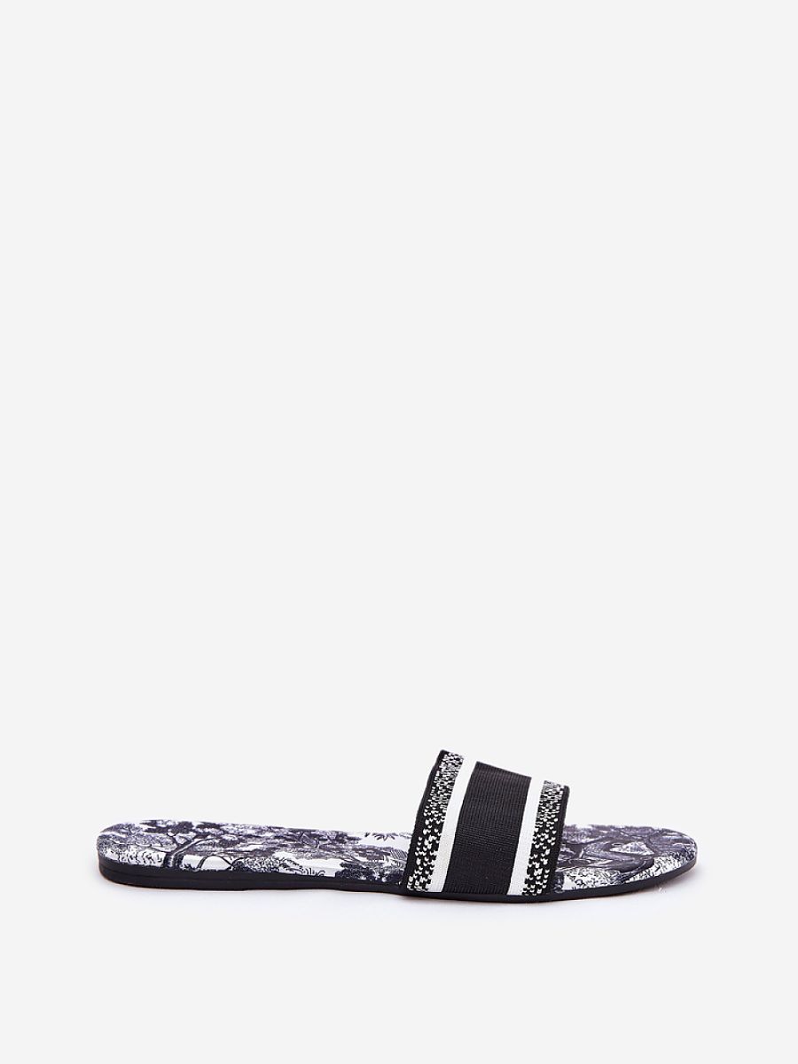 Flat women’s sandals made of textile material, which stand out with a unique pattern, adding a special character to them. These sandals are perfect for warm days, they go well with summer dresses, skirts or shorts, introducing lightness, color and a fashionable accent to everyday stylizations. Perfect for both the beach and city walks.