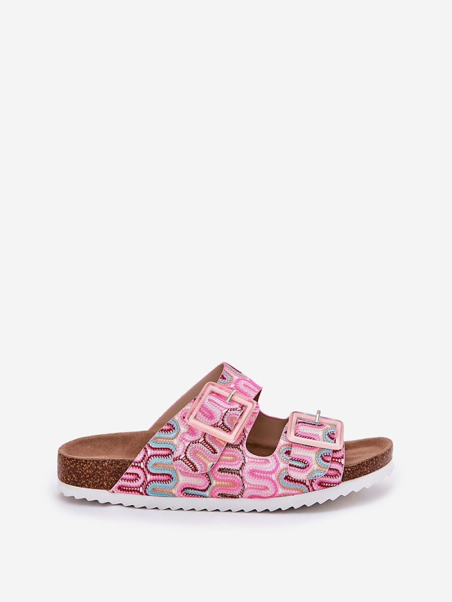 Patterned women’s flip-flops made of textile material, set on a cork platform, which combine comfort with a fashionable look. Two straps with buckles decorated with sequins give them a unique character. The contoured suede insole provides comfort throughout the day. These flip-flops will be a perfect choice for summer days, perfectly matching dresses, skirts or shorts, adding lightness and shine to every outfit.