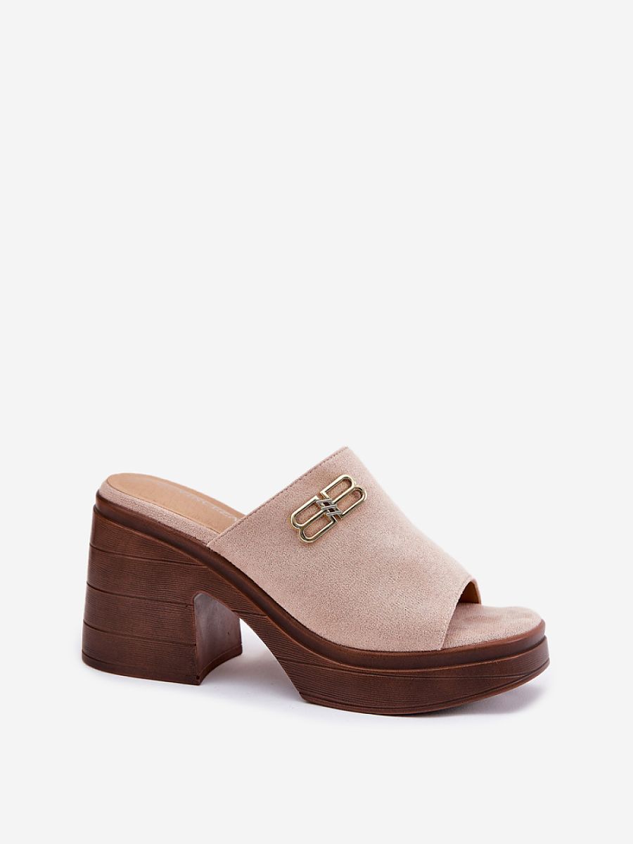 Elegant women’s sandals made of eco-suede are the perfect choice for special occasions. The gold detail at the front adds a subtle shine to them, giving them an elegant character. Set on a chunky heel and platform, they provide stability and comfort throughout the day. These sandals combine a modern look with functionality, perfectly complementing elegant outfits for various celebrations and evening outings.