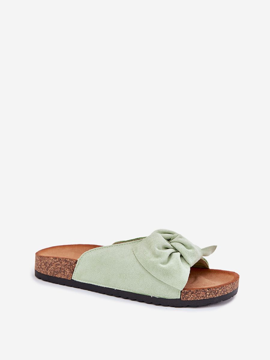 Women’s sandals made of eco-suede with a cork sole are the perfect choice for warm days. Comfortable, profiled insole ensures comfort throughout the day, and the bow at the front adds charm. A classic cut that will work perfectly in everyday stylings.