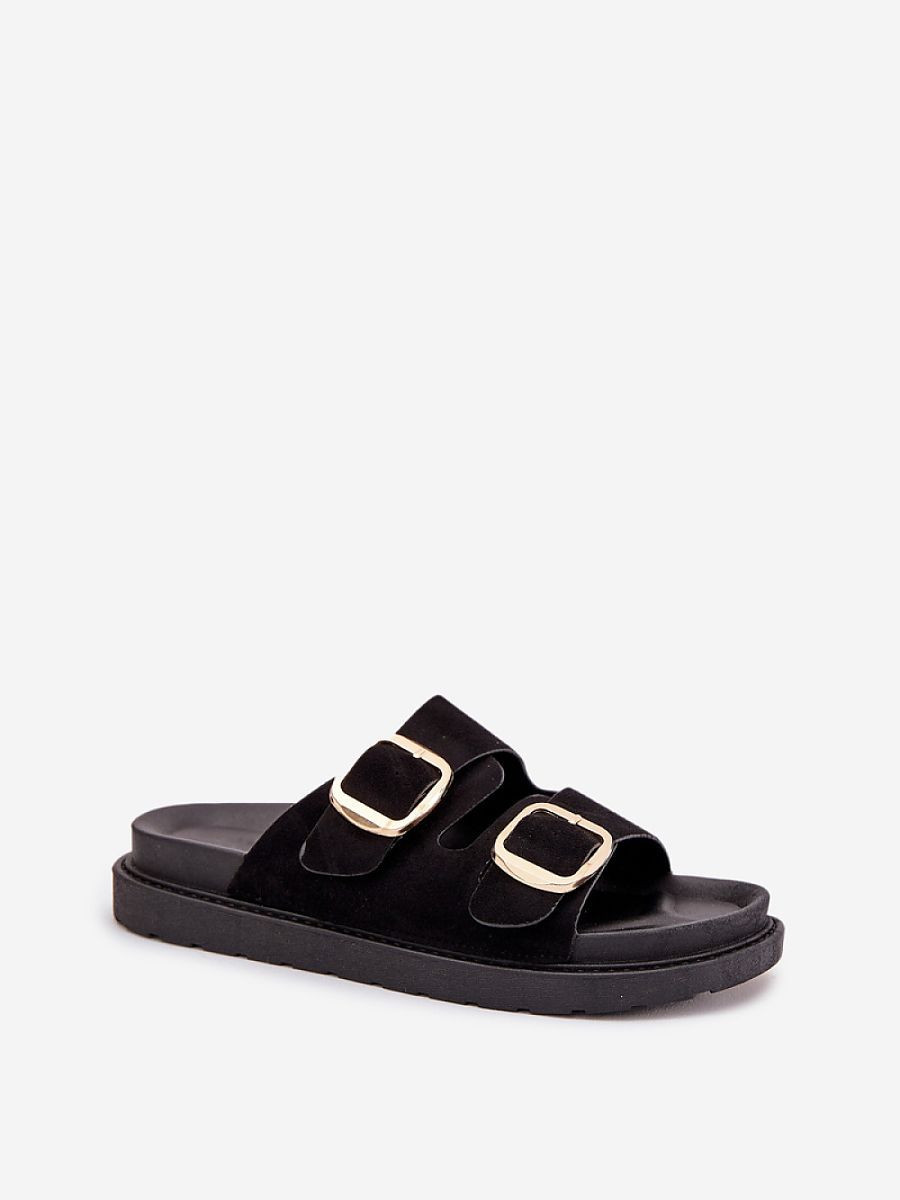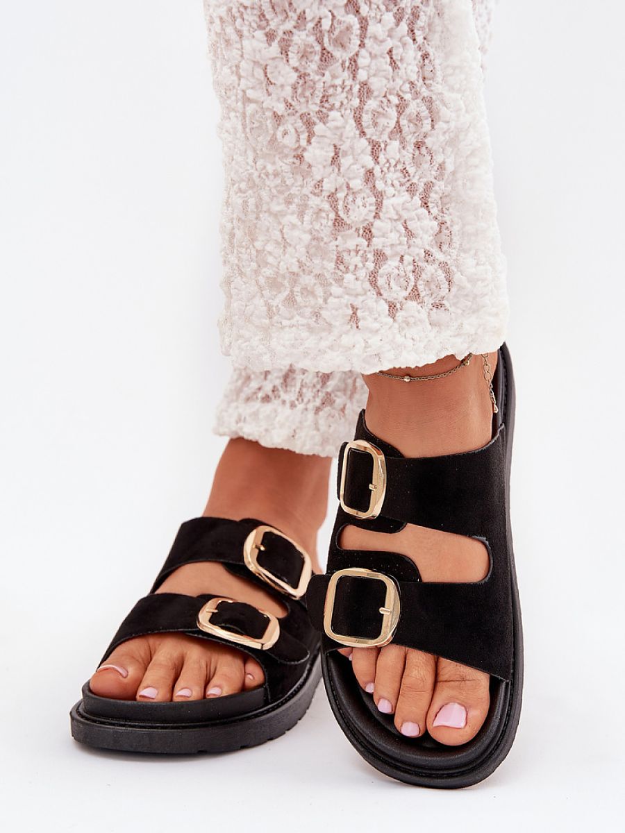 Women’s sandals made of eco-suede. Mounted on a platform. Two adjustable straps with gold buckles ensure a perfect fit, and a profiled insole guarantees comfort all day long. Perfect for everyday outings.