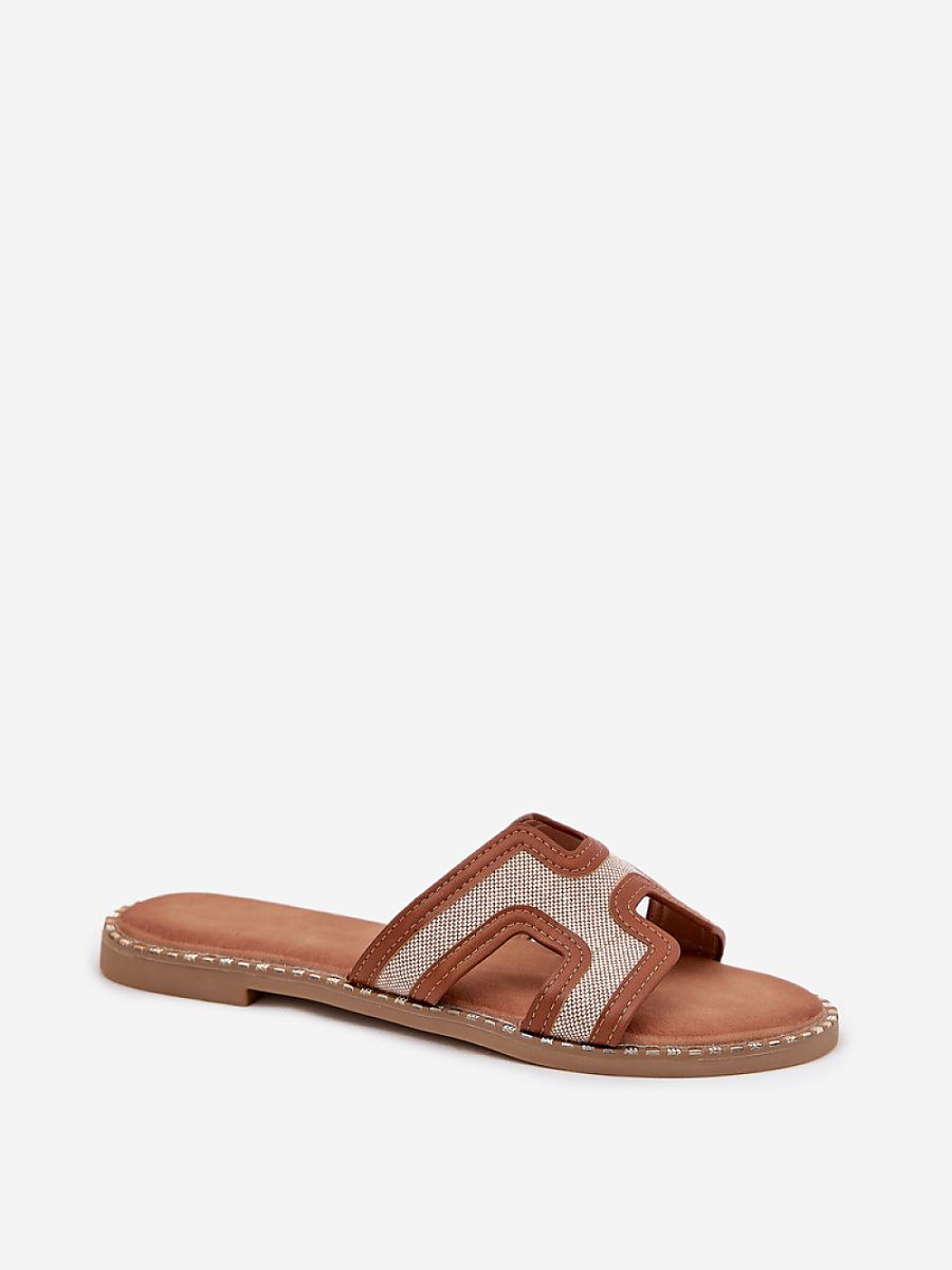 Women’s sandals made of a combination of eco-leather and textile material, set on a flat heel, are a comfortable proposition for everyday wear. There is a golden decoration at the sole, which adds a unique character to them. The soft insole provides comfort throughout the day, making the sandals perfect for casual and summer stylings.