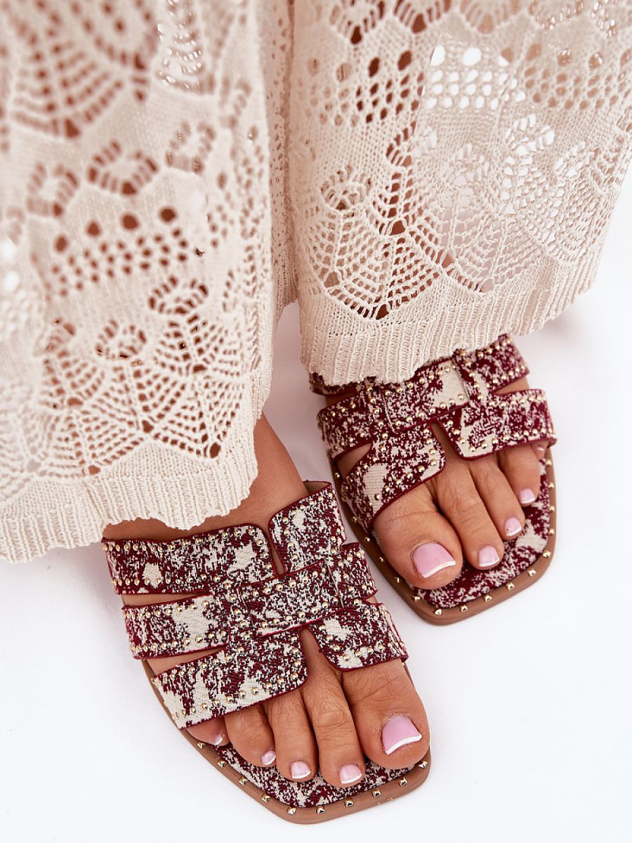 Decorated women’s slippers made of textile material are an elegant and comfortable option for warm days. Set on a flat heel, they provide comfort throughout the day. Subtle decorations attract the eye, adding a unique character to the shoes. Perfect for everyday stylizations, they combine functionality with a fashionable look.