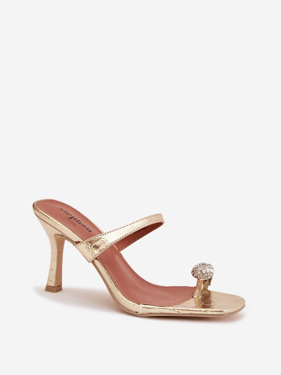 Elegant women’s faux leather sandals are a unique proposition for women who value style and a feminine look. The slim stiletto heel beautifully emphasizes the silhouette, adding lightness and elegance. The midfoot strap provides stability, and the decorative, jewelry detail on the toe catches the eye and gives the whole a luxurious character. This model will work perfectly for evening outings, receptions, and special occasions.